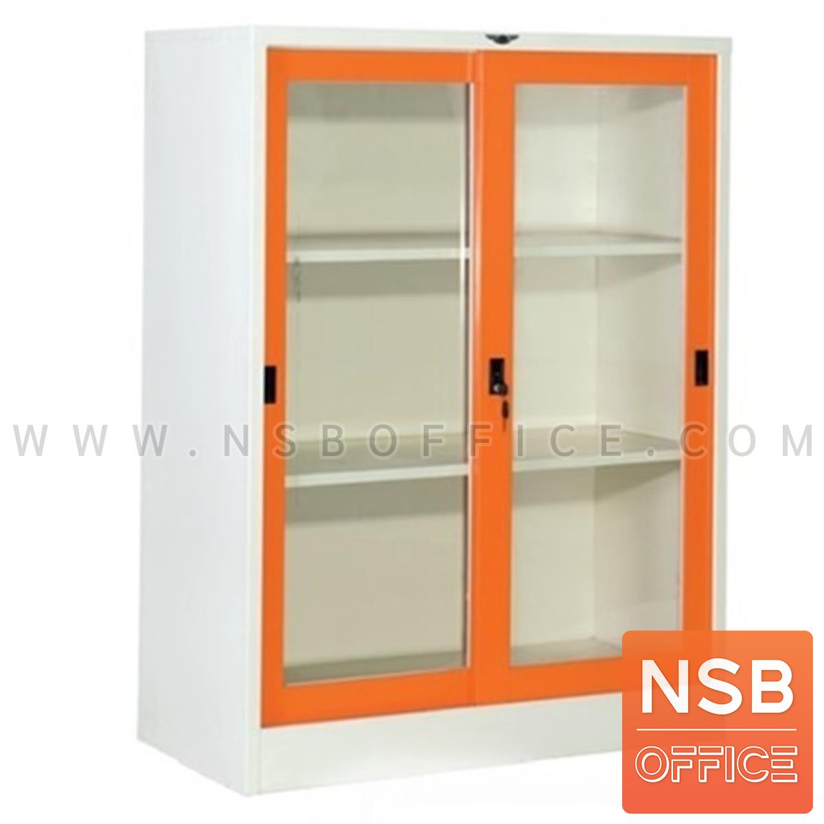 ตู้เหล็กบนบานเลื่อนกระจก-ล่างบานเลื่อนทึบ รุ่น SLK-0613 ขนาด 91.4W* 45D* 181.7H cm.