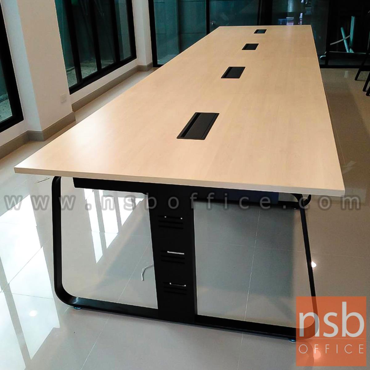โต๊ะประชุมสี่เหลี่ยมมุมมน ขนาด 240W cm. พร้อมรางไฟใต้โต๊ะ ขาเหล็กทรงแจกัน