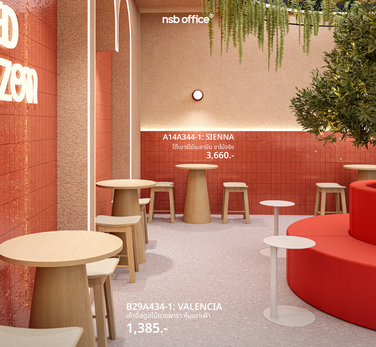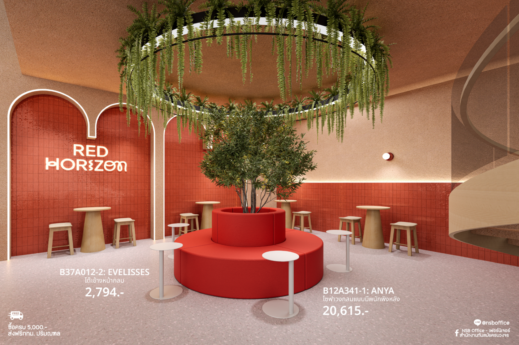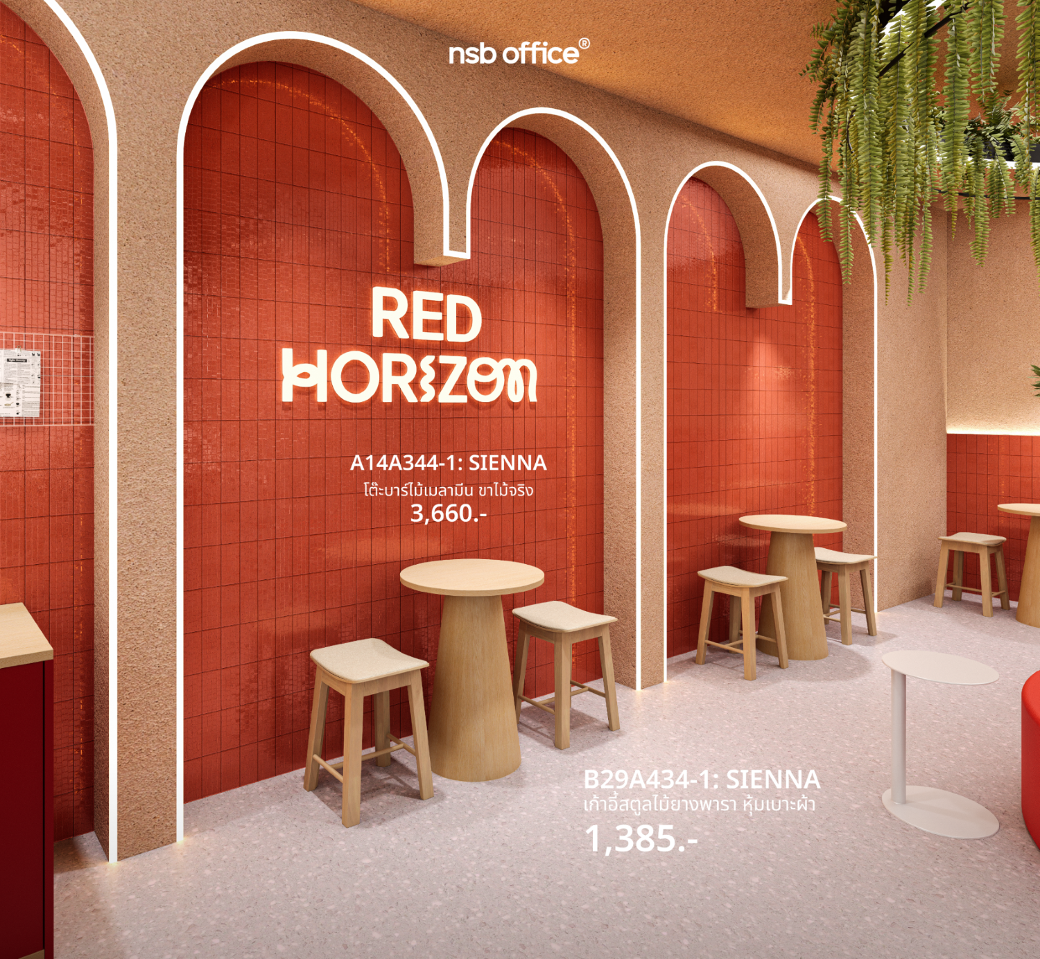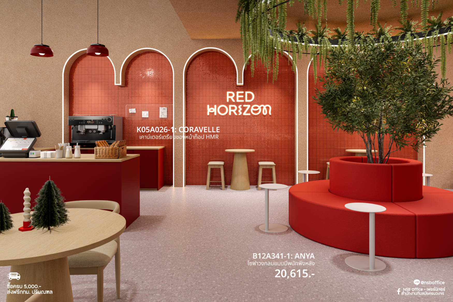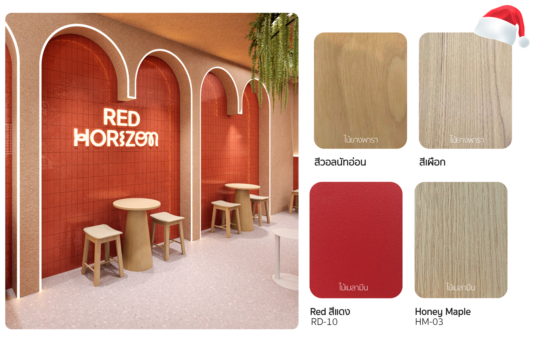 ด้วยการจับคู่สีแดงโทนอุ่นเข้ากับวัสดุไม้ธรรมชาติ Red Horizon Collection จึงเป็นตัวเลือกที่ตอบโจทย์สำหรับทั้งร้านกาแฟและร้านอาหาร