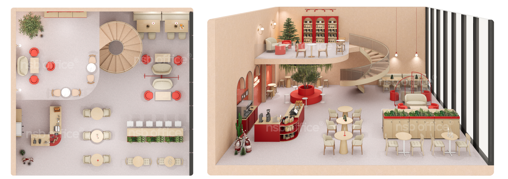 การออกแบบร้านกาแฟและร้านอาหารในปัจจุบัน ไม่ได้มองแค่ความสวยงามเพียงอย่างเดียว แต่ต้องคำนึงถึงการใช้งานจริง ความทนทาน และบรรยากาศที่ช่วยดึงดูดลูกค้าให้อยากนั่งนานและกลับมาใช้บริการซ้ำ Red Horizon Collection คือแนวคิดการเลือกใช้เฟอร์นิเจอร์ร้านกาแฟและร้านอาหาร ที่ผสาน โต๊ะบาร์คาเฟ่ เก้าอี้ไม้ยาง และโซฟา เข้ากับโทนสีแดงอบอุ่นและไม้โทนอ่อน เพื่อสร้างภาพลักษณ์ร้านที่โดดเด่น รับบรรยากาศคริสต์มาส แต่ยังสามารถใช้งานได้ตลอดทั้งปี