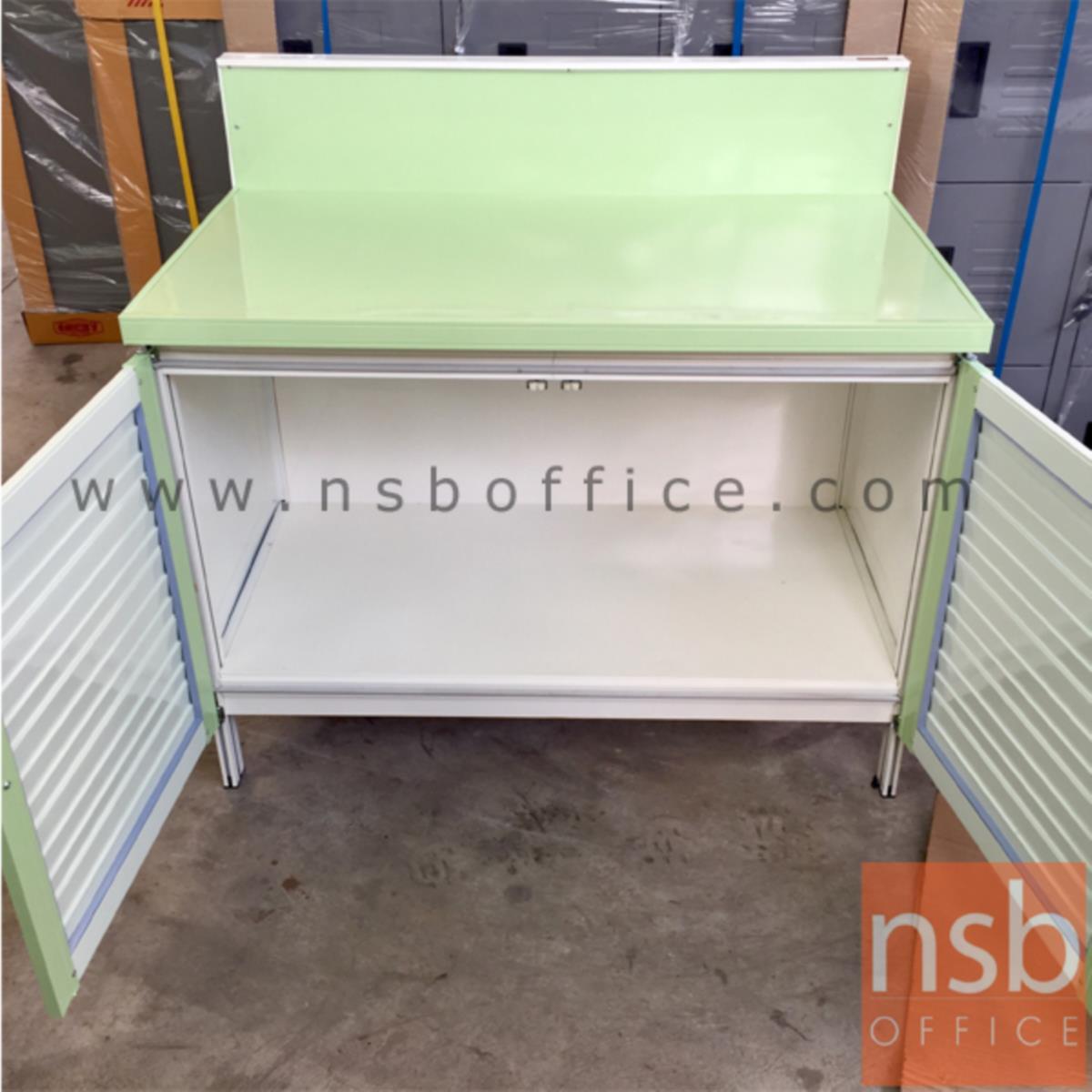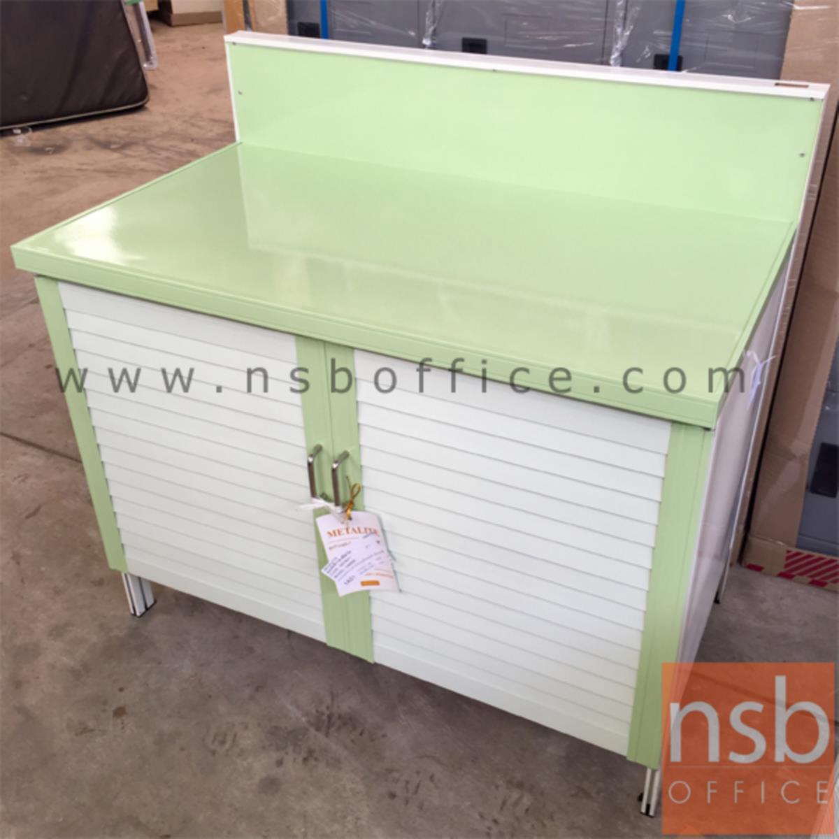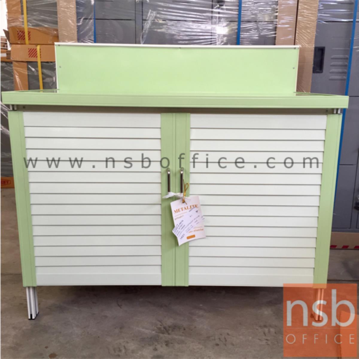 : เคาน์เตอร์ครัววางเตา ทำจากอลูมิเนียมทั้งตัว หน้าบานเกล็ด