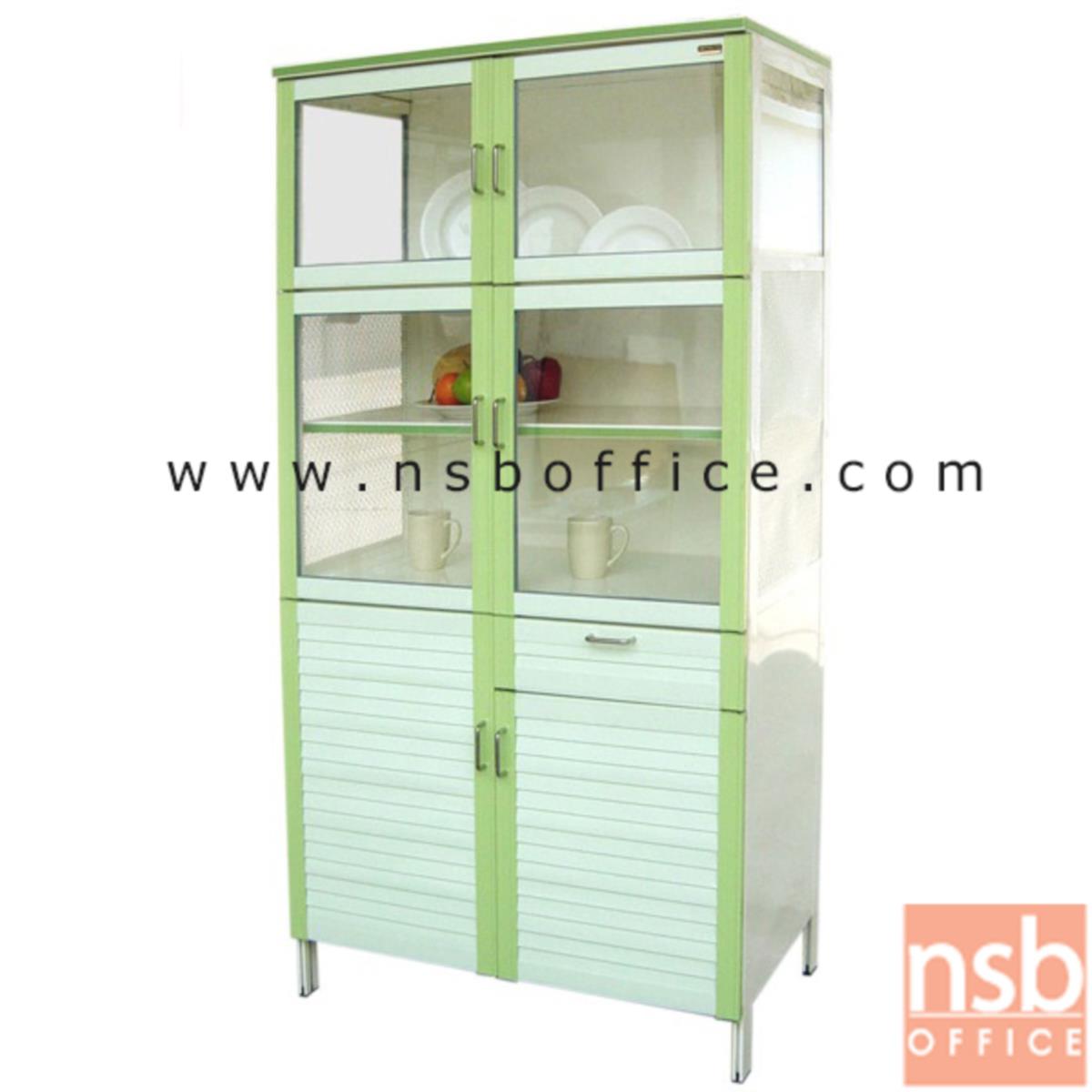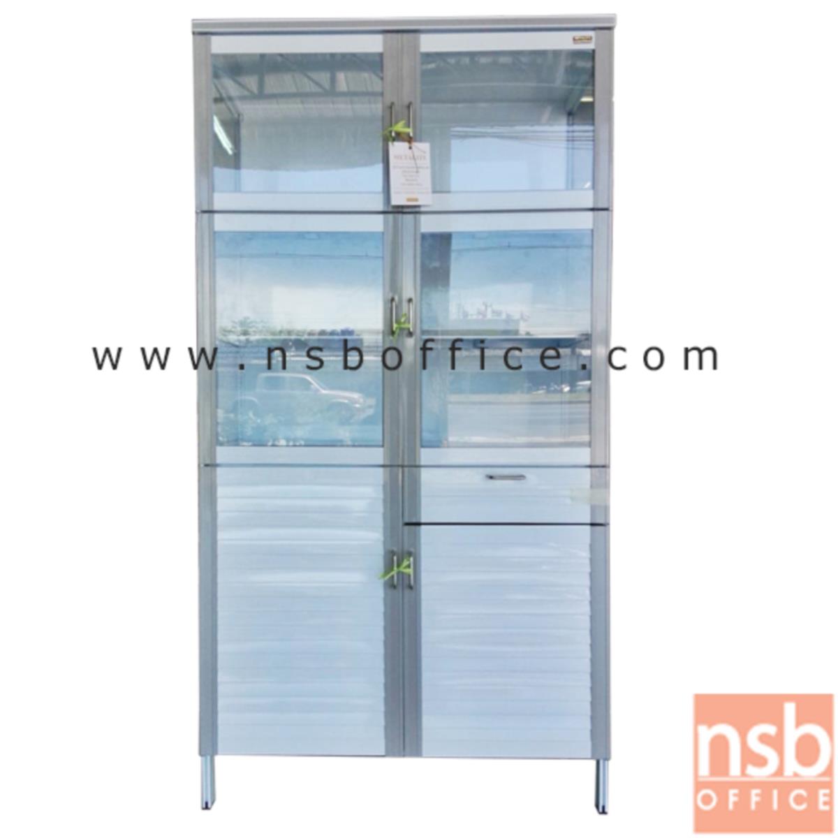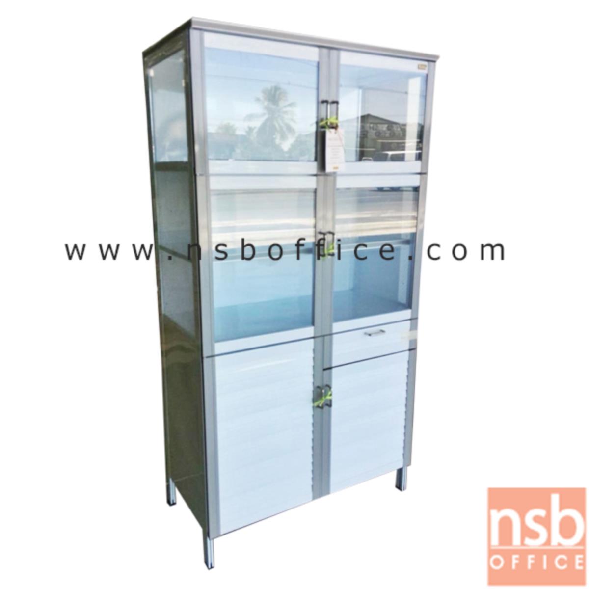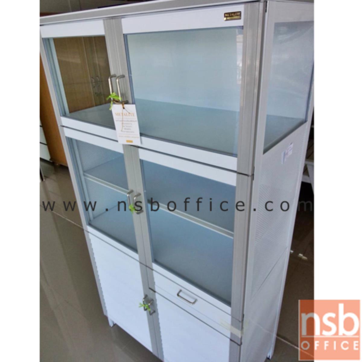 : ตู้กับข้าวอลูมิเนียม 1 ลิ้นชัก 4 บานเปิดกระจก 2 บานเกล็ด ขนาด 90W*47D*170H cm.