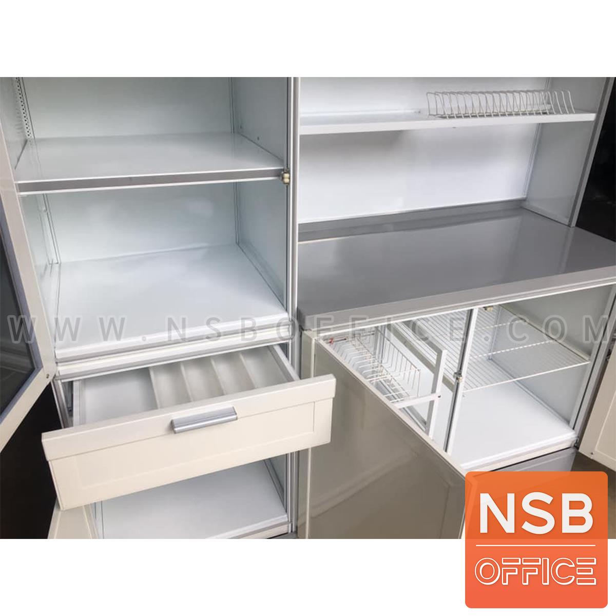 : ตู้ครัวสูงอลูมิเนียมหน้าเรียบ กว้าง 150 cm.