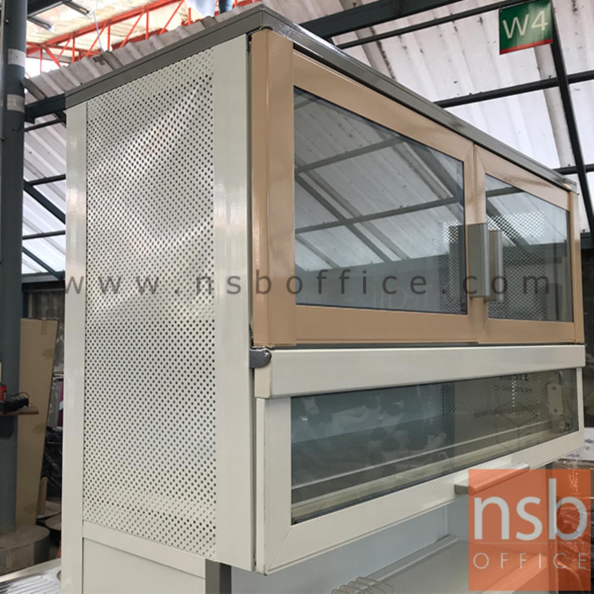 โครงสร้างทำจากอลูมิเนียมอบสี ตู้ล่างประตูบานทึบ