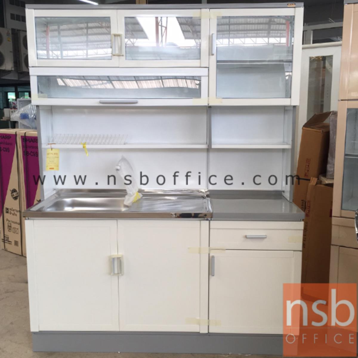 : ตู้ครัวสูงอลูมิเนียม พร้อมอ่างซิงค์ กว้าง 150 cm.