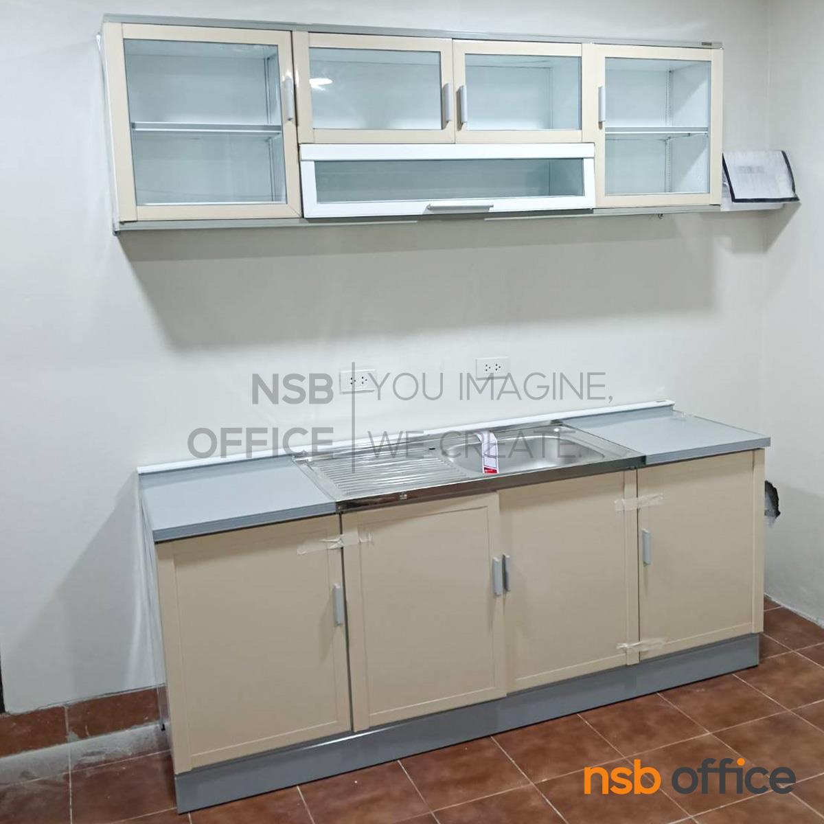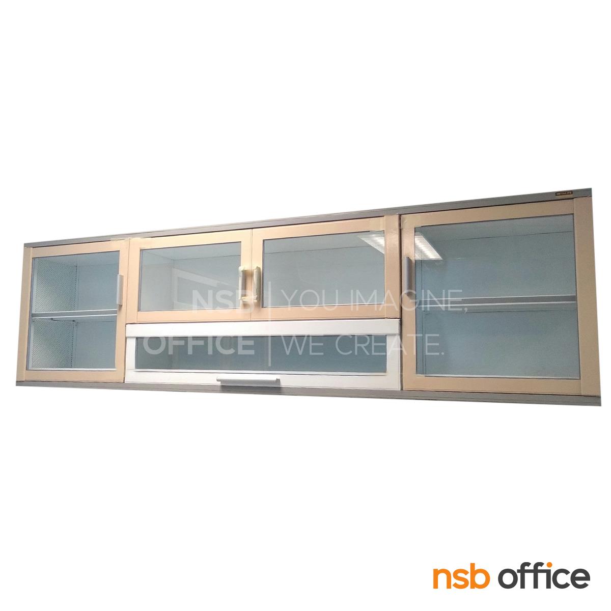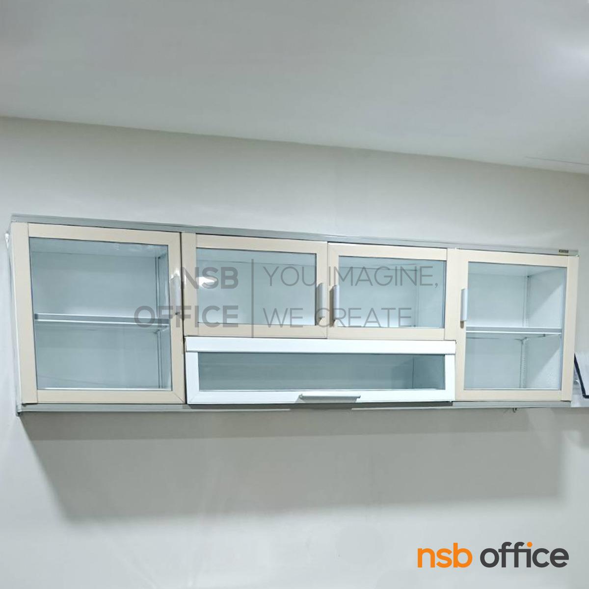 : ตู้แขวนลอยอลูมิเนียม หน้าบานกระจกใส กว้าง 200 ซม. (ติดตั้งเฉพาะผนังปูน)