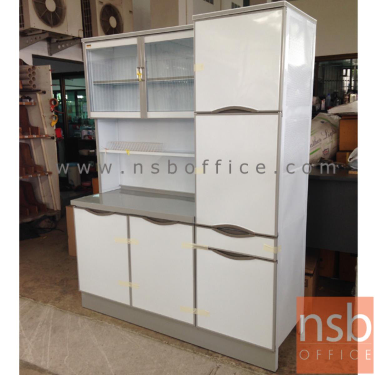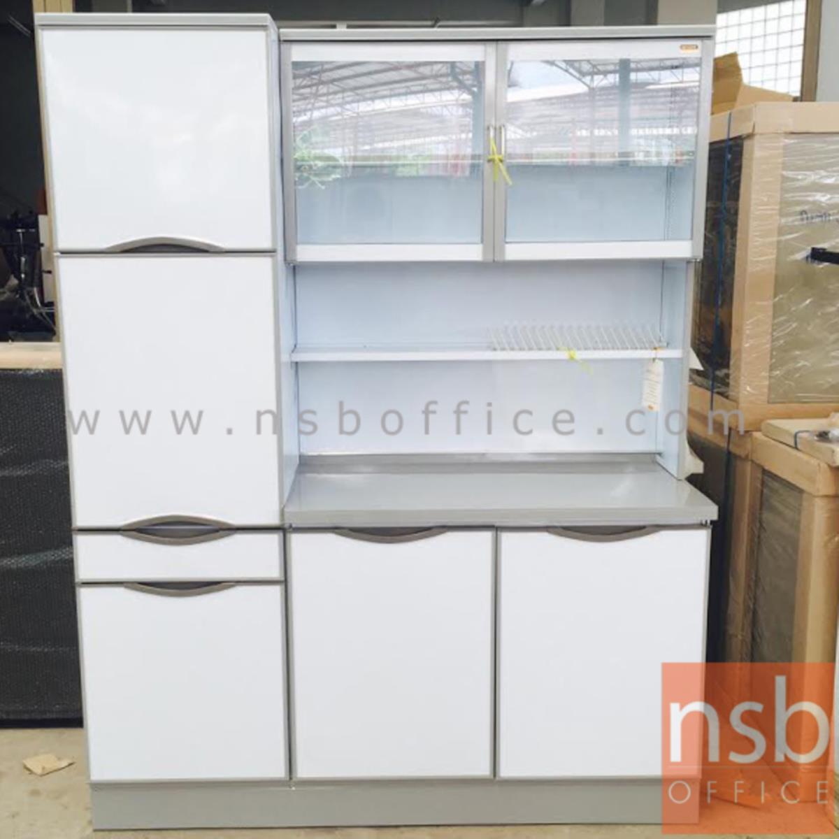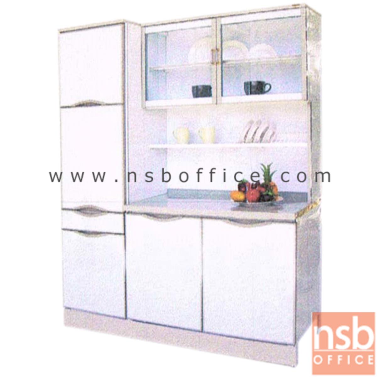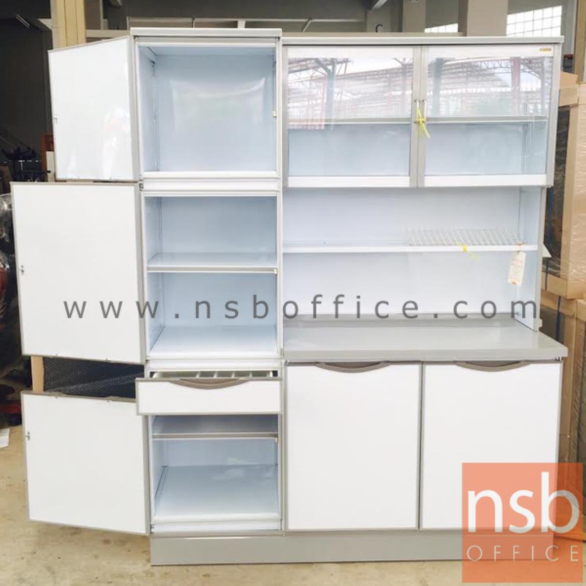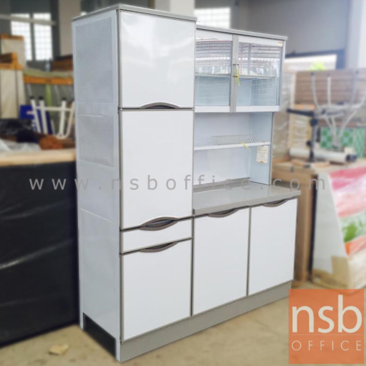 G07A108: ตู้ครัวสูงอลูมิเนียม มีตู้เก็บของด้านข้าง ลิ้นชักมีถาดใส่ช้อน ขนาด 150W*54D*190H cm. ยกเลิกการผลิต 17/8/66