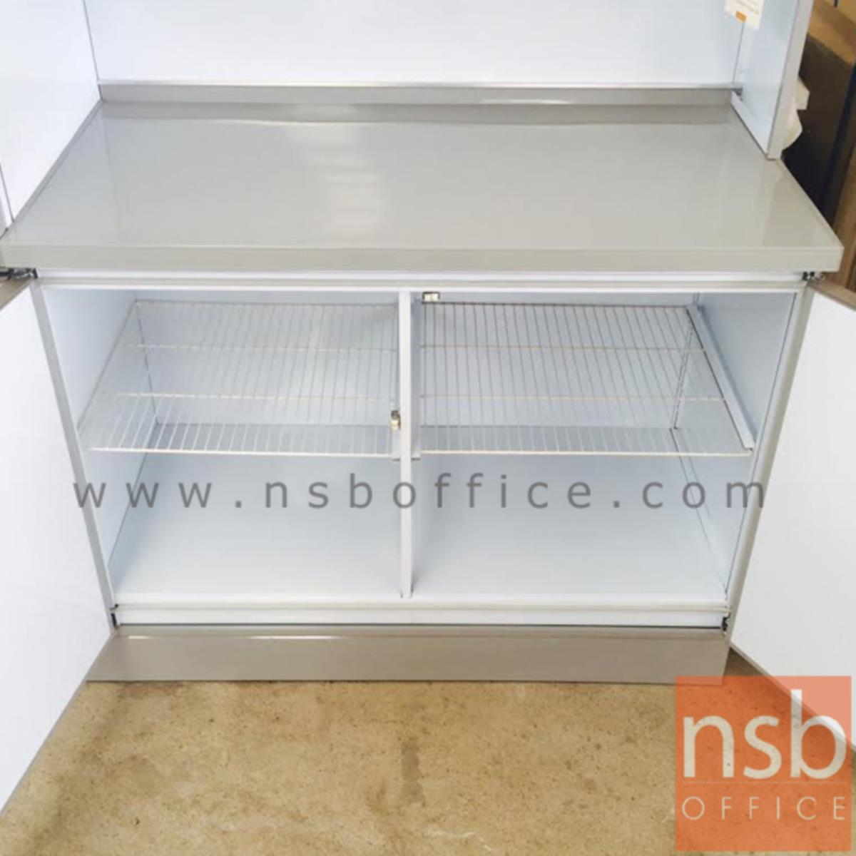 โครงสร้างทำจากอลูมิเนียมอบสี ตู้ล่างประตูบานทึบ