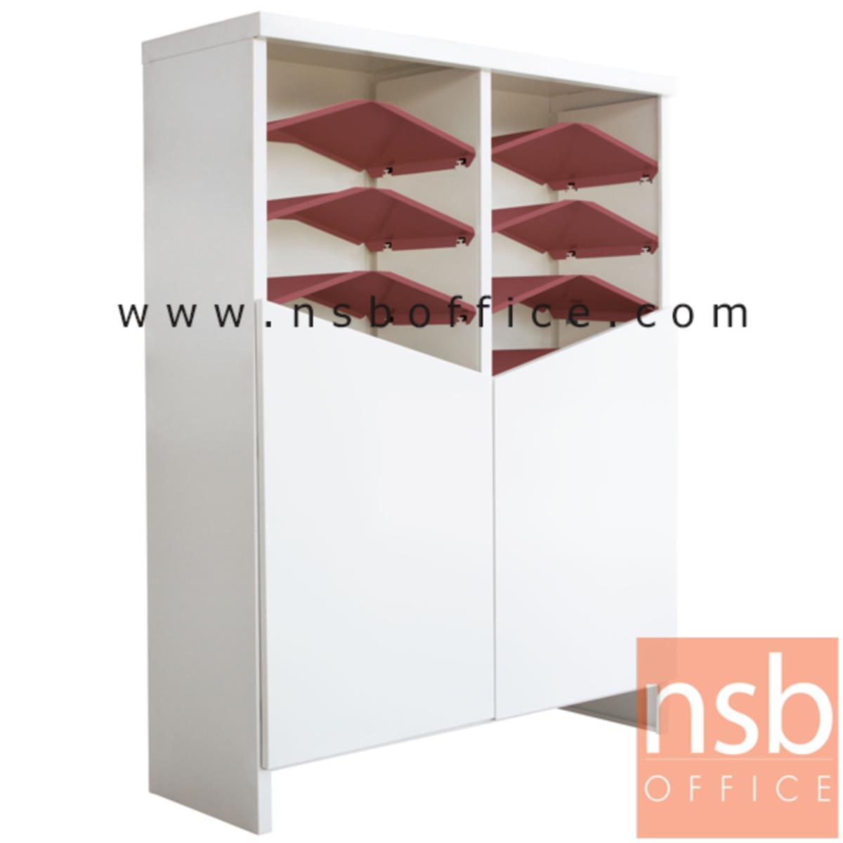 G05A047: ตู้เหล็กวางรองเท้าโมเดิร์น 2 บานเปิด แผ่นชั้นเอียงข้าง 7 ชั้น (วางรองเท้าได้ 32 คู่)