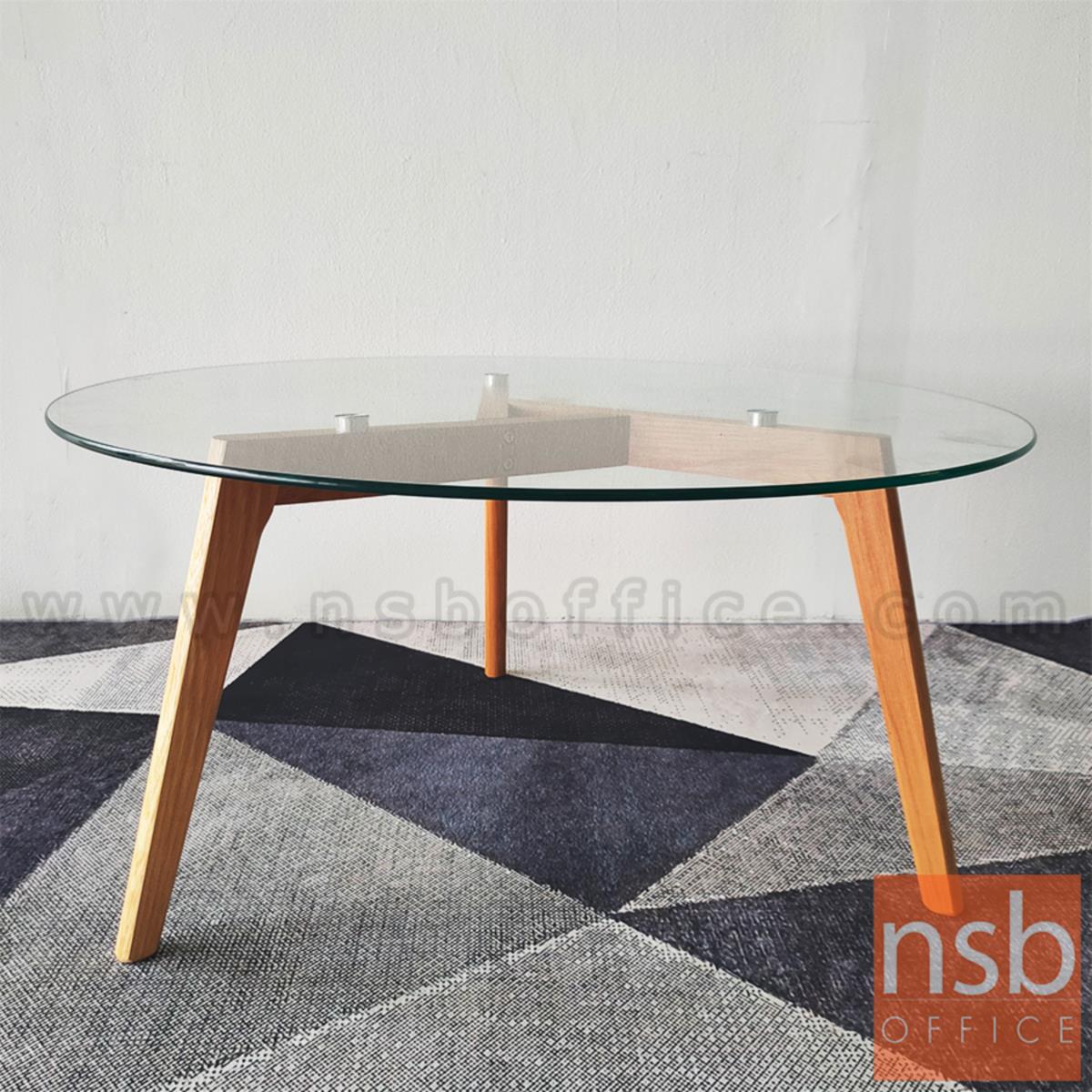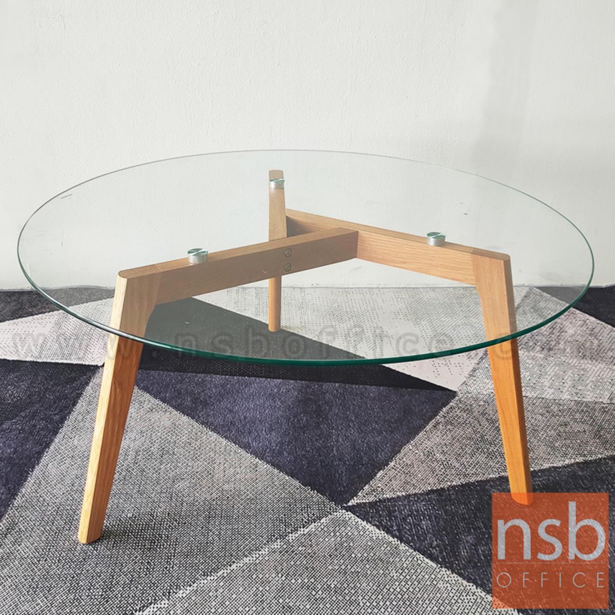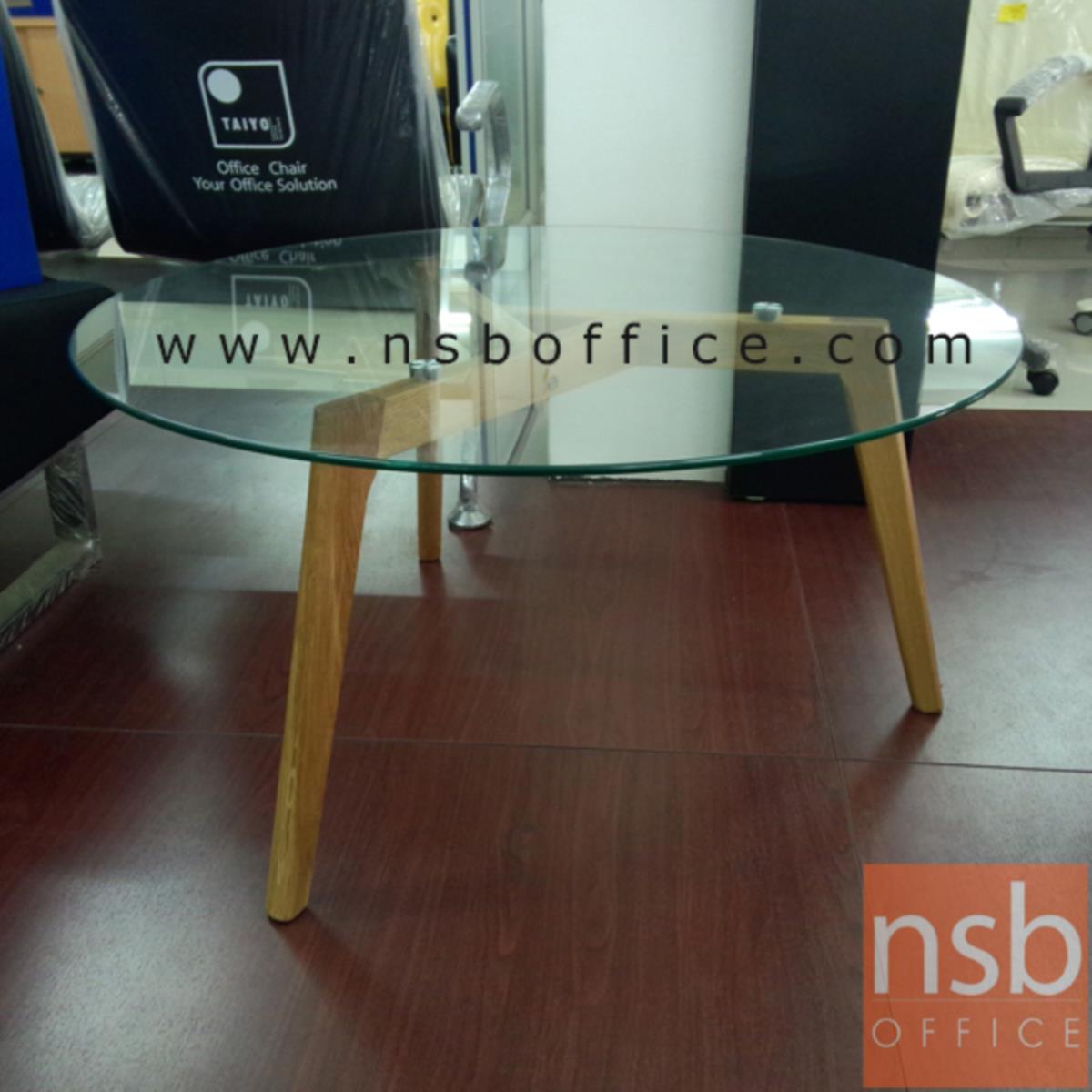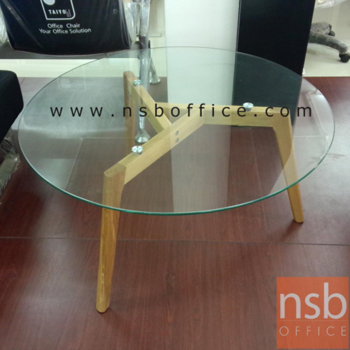 B13A178: โต๊ะกลางกระจกกลม รุ่น Kane (เคน) ขนาด 90Di cm. ขาไม้ ยกเลิกนำเข้า