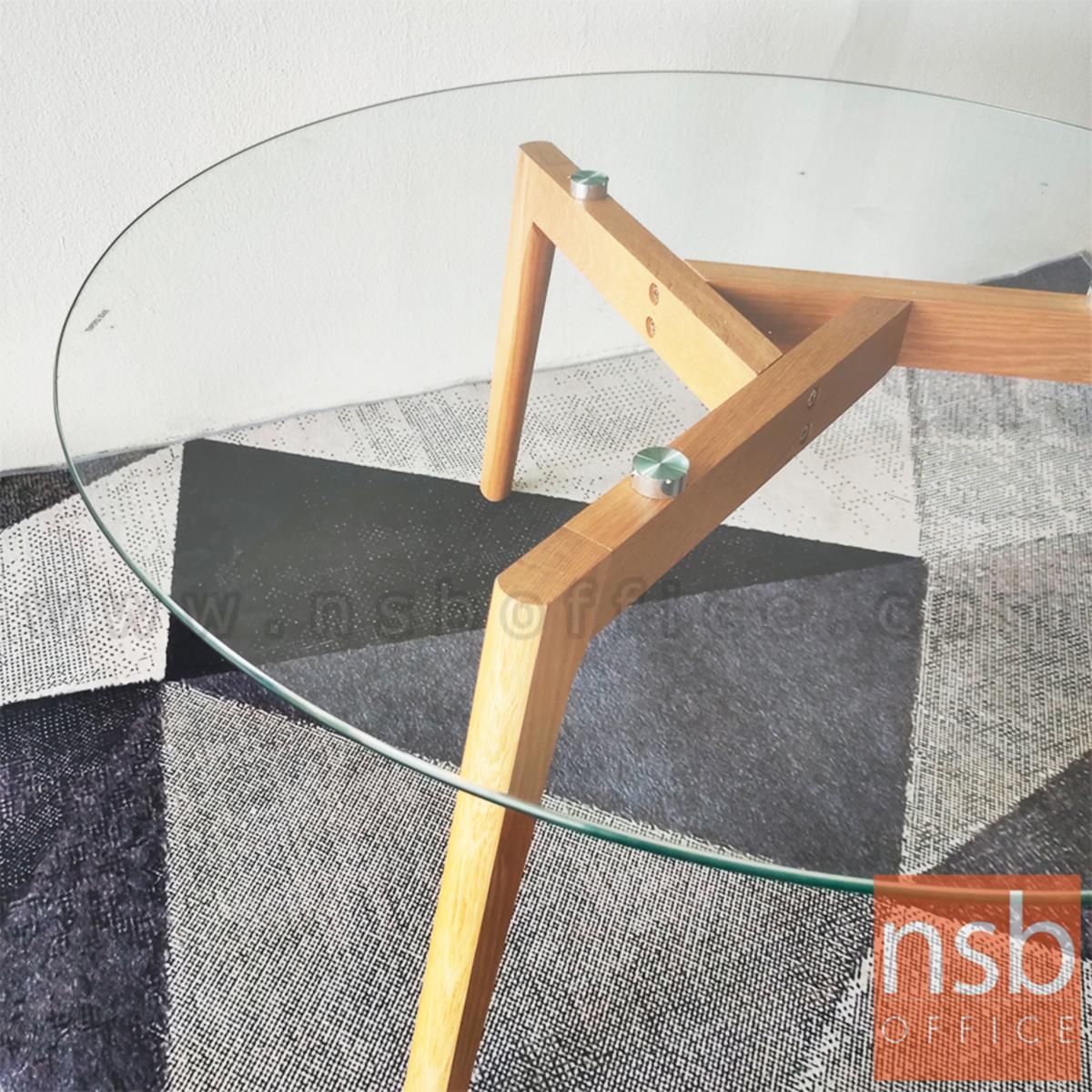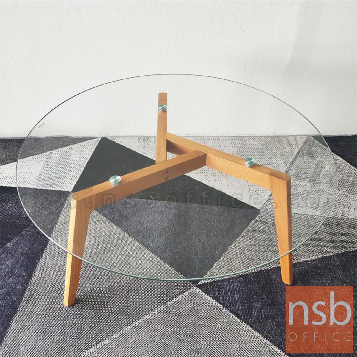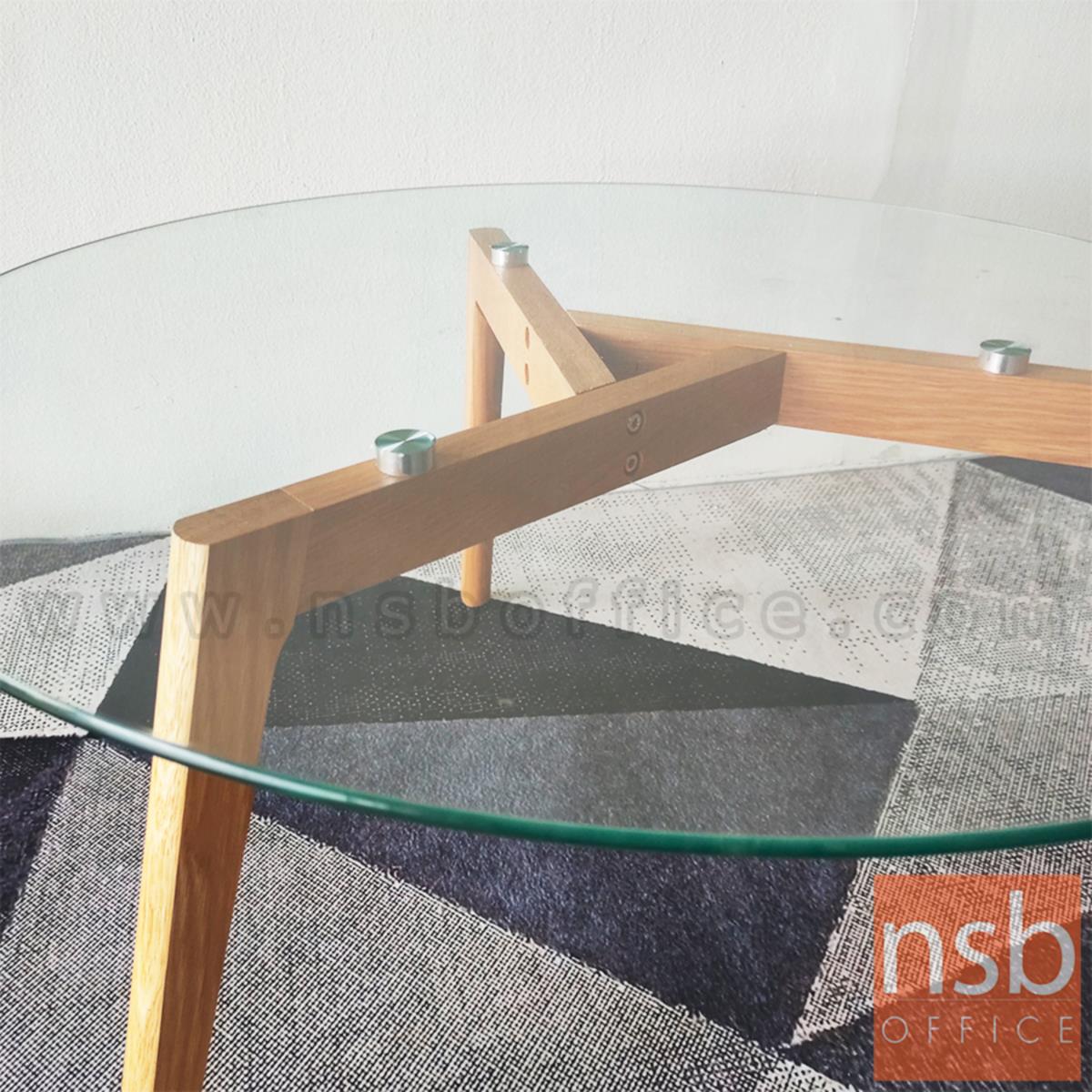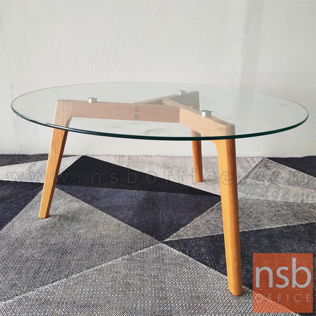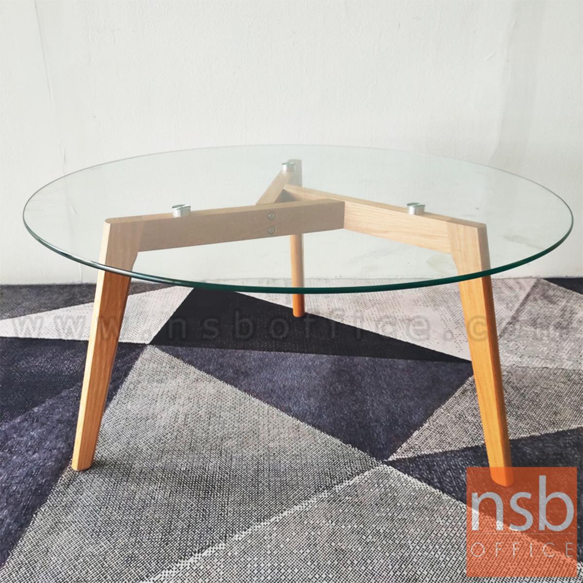 B13A178: โต๊ะกลางกระจกกลม รุ่น Kane (เคน) ขนาด 90Di cm. ขาไม้ ยกเลิกนำเข้า