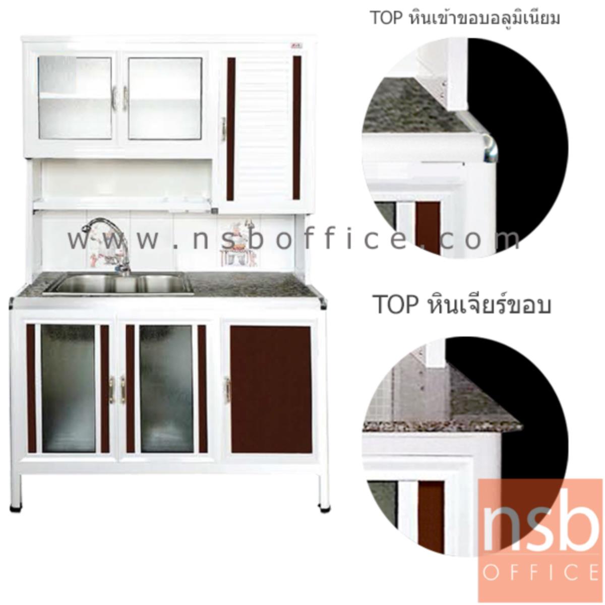 : ตู้ครัวอลูมิเนียมอ่างซิงค์ 2 หลุมลึก กว้าง 120 ซม. ไม่มีลิ้นชัก (หน้าTOPหินแกรนิตเจียร์ขอบ)