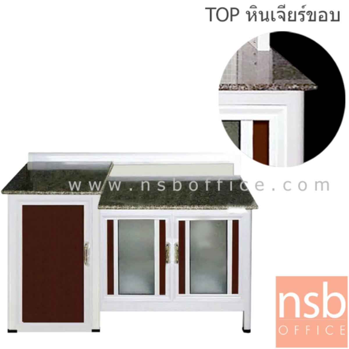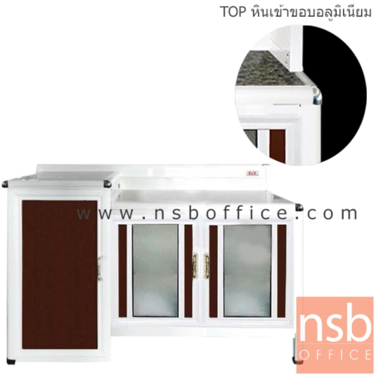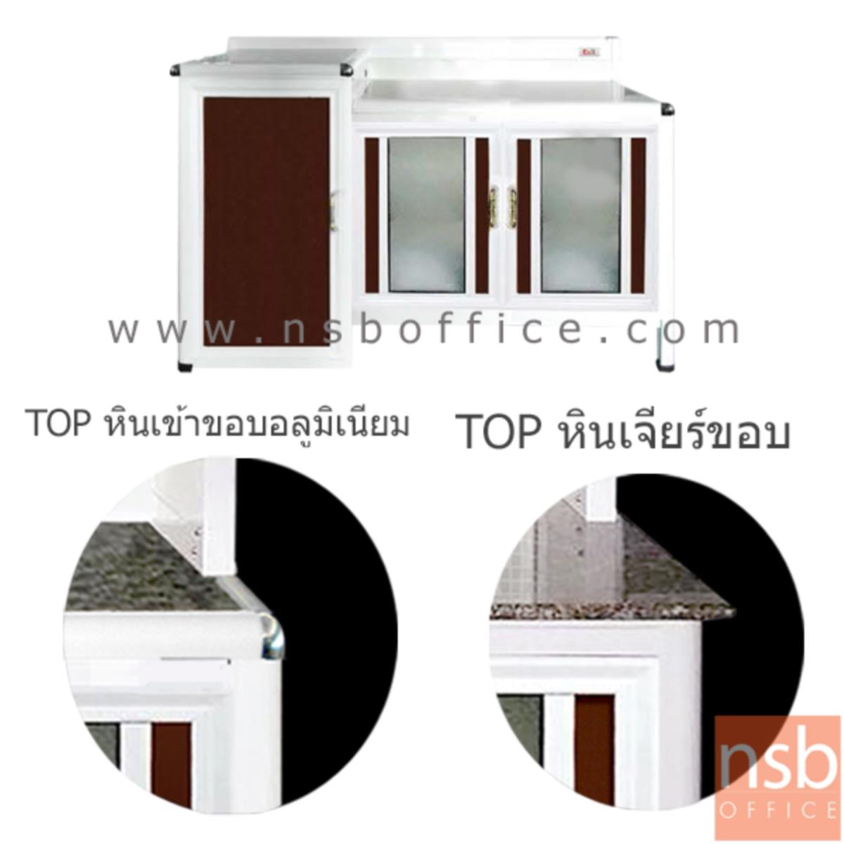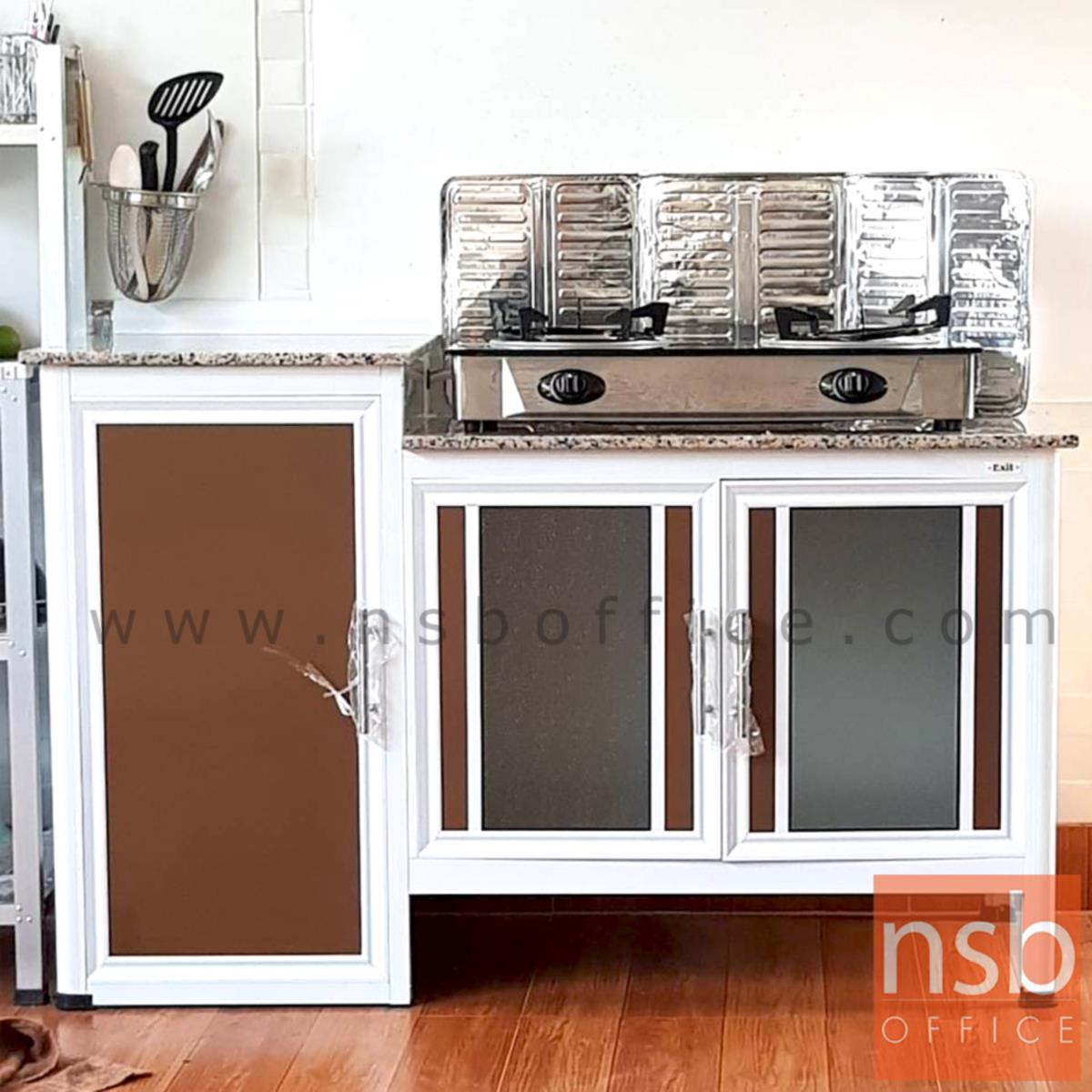 : ตู้ครัววางเตาแก๊สอลูมิเนียม กว้าง 128 ซม (หน้าTOPหินอ่อนเจียร์ขอบ)