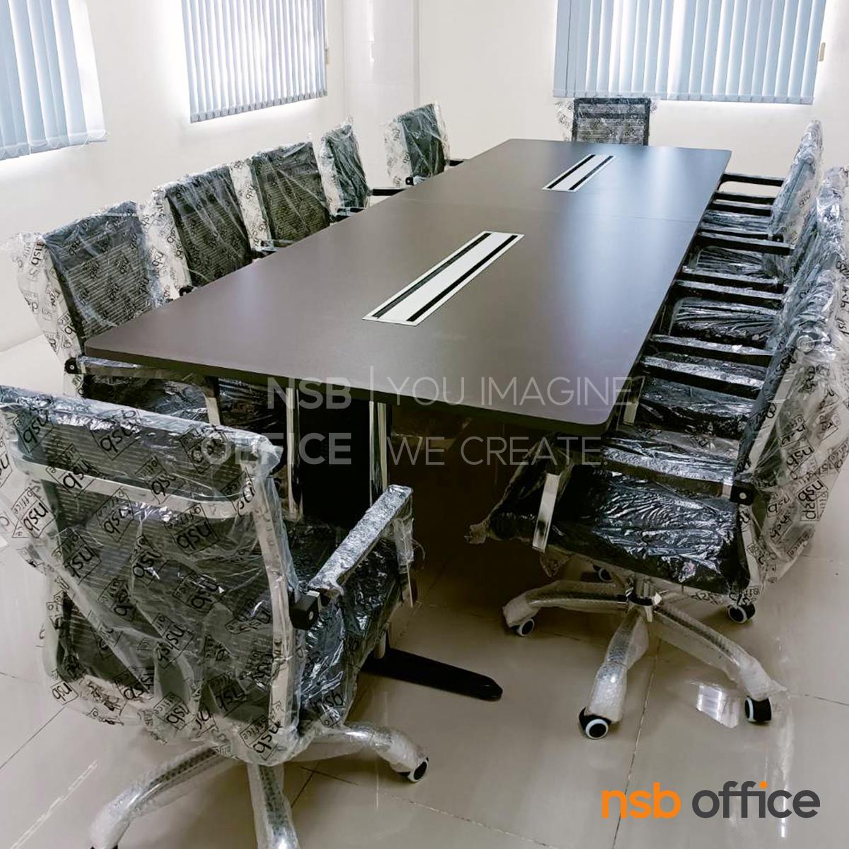A05A108: โต๊ะประชุมสี่เหลี่ยมมุมมน รุ่น Iren (ไอเรน) ขนาด 360W, 420W, 480W cm. พร้อมช่องรางไฟยาวพิเศษ ขาเหล็กตัวไอ