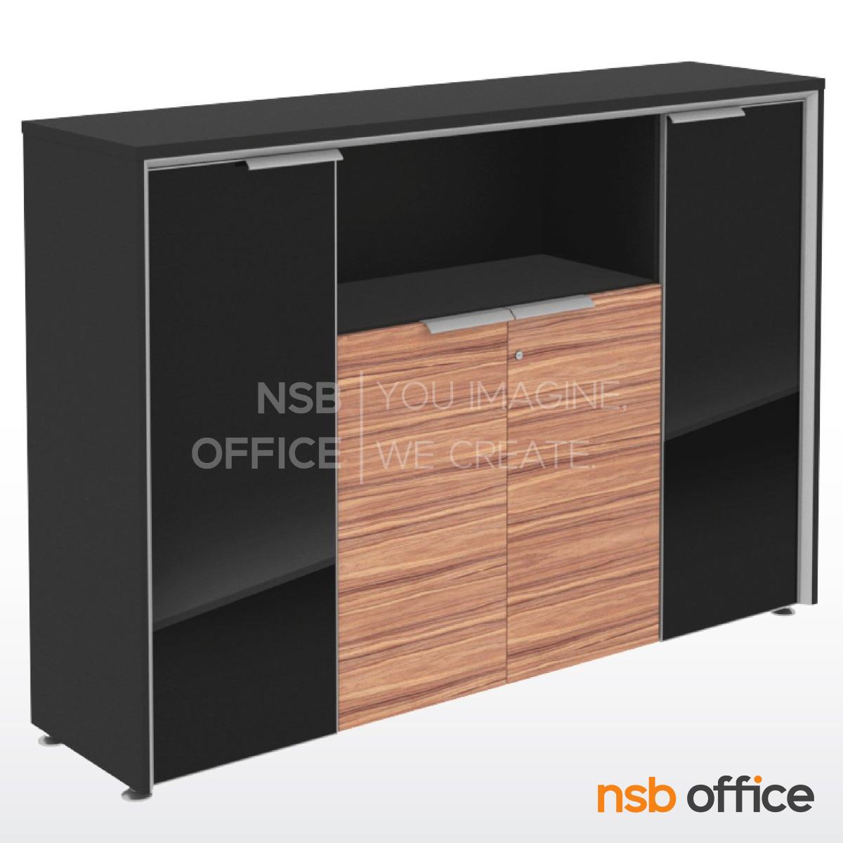 : ตู้เอกสาร สูง 126H cm. 4 บานเปิด 1 ช่องโล่ง รุ่น Mantis (แมนทิส) เมลามีน สีวอลนัทตัดดำ