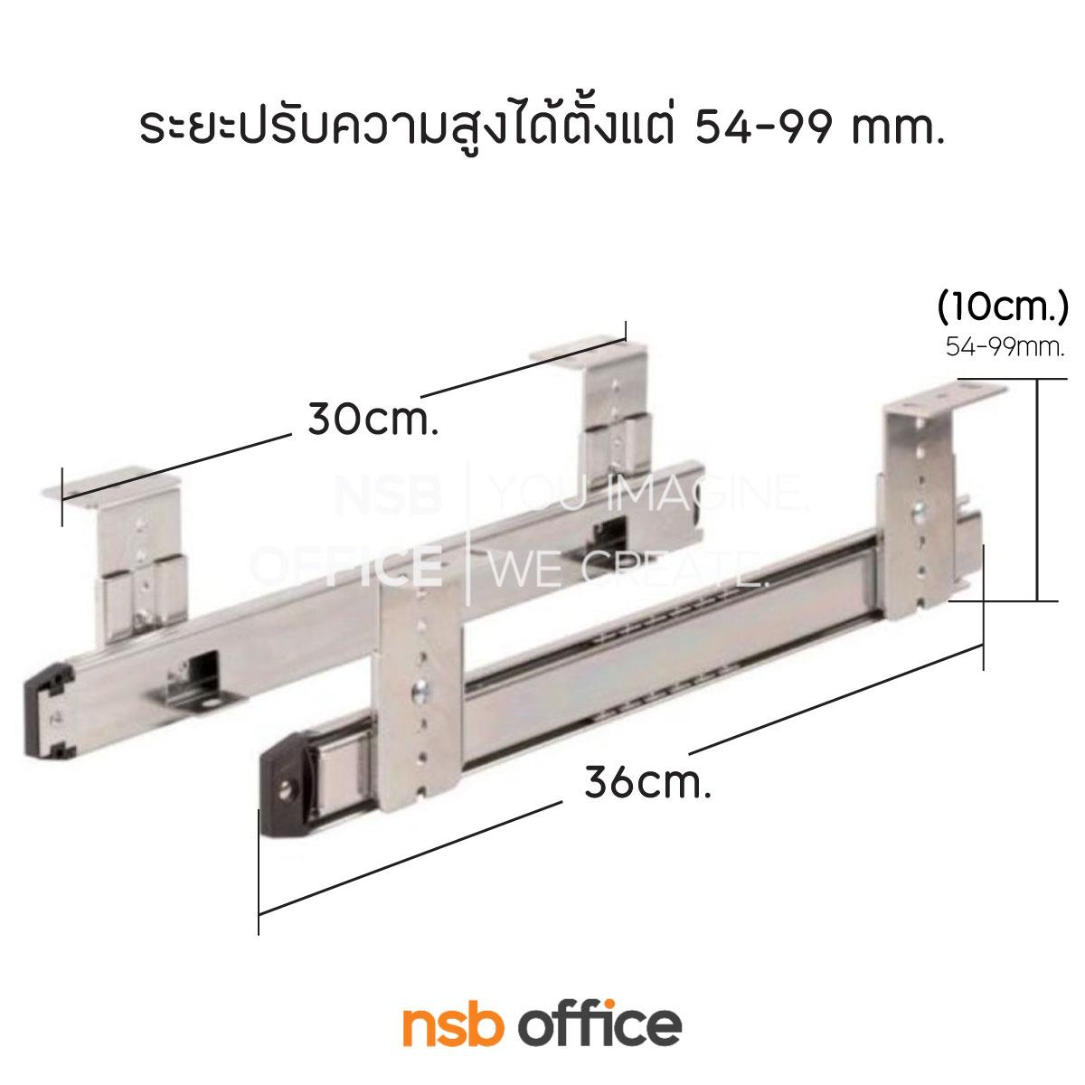 A04A026: รางคีย์บอร์ดเมลามีนรางเลื่อน รุ่น NSB-F ขนาด 60+9W, 65+9W, 70+9W cm. ระบบลูกปืน ใช้แขวนติดใต้หน้าโต๊ะ