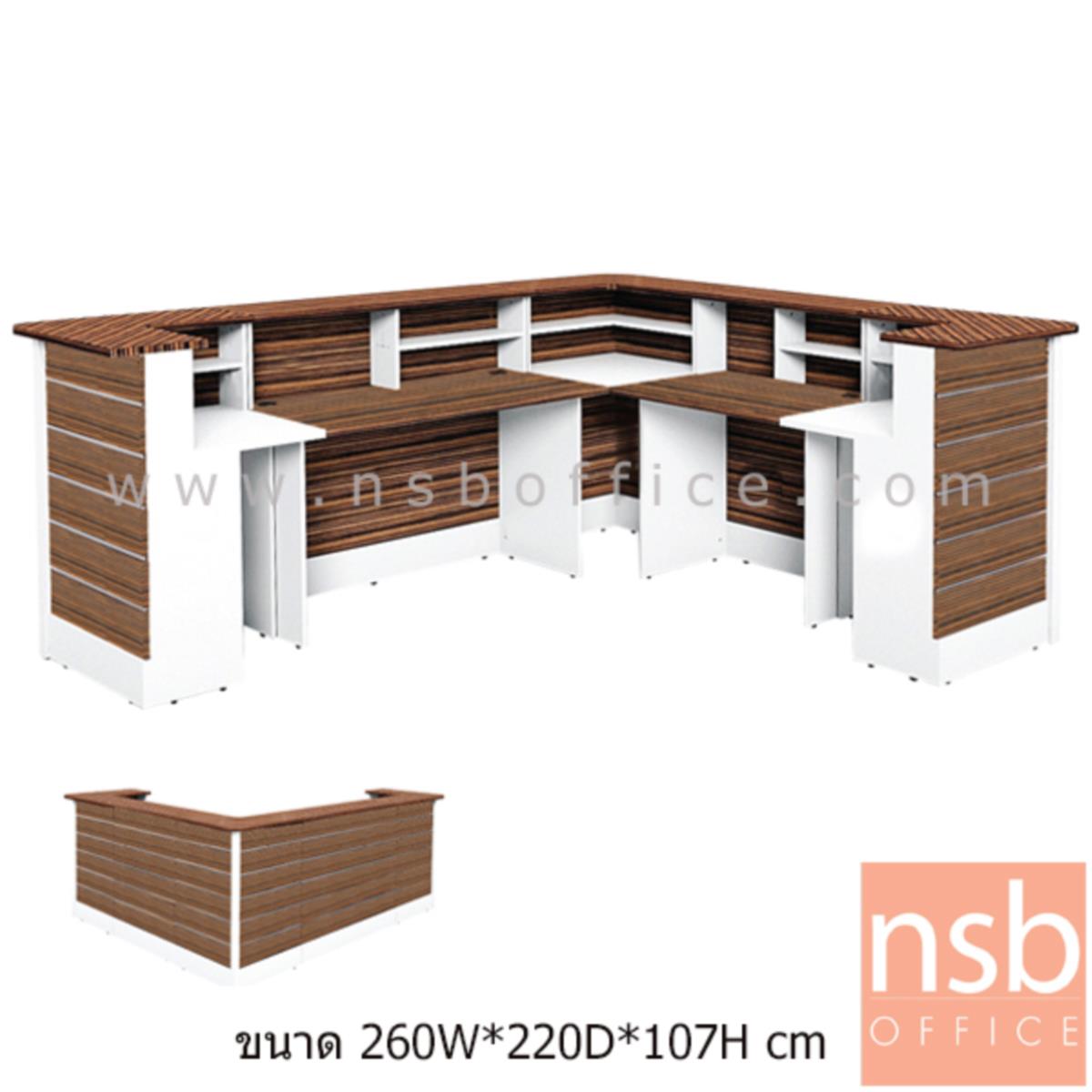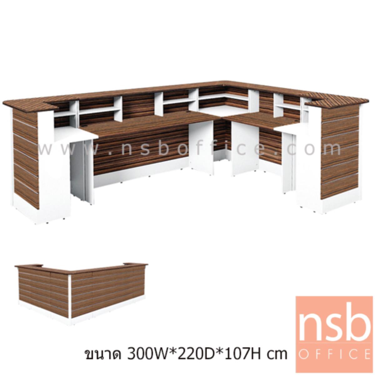 A11A054: เคาน์เตอร์ตัวแอล รุ่น L-Shape ขนาด 220W ,260W ,300W*220D cm. เมลามีน สีซีบราโน่-ขาว