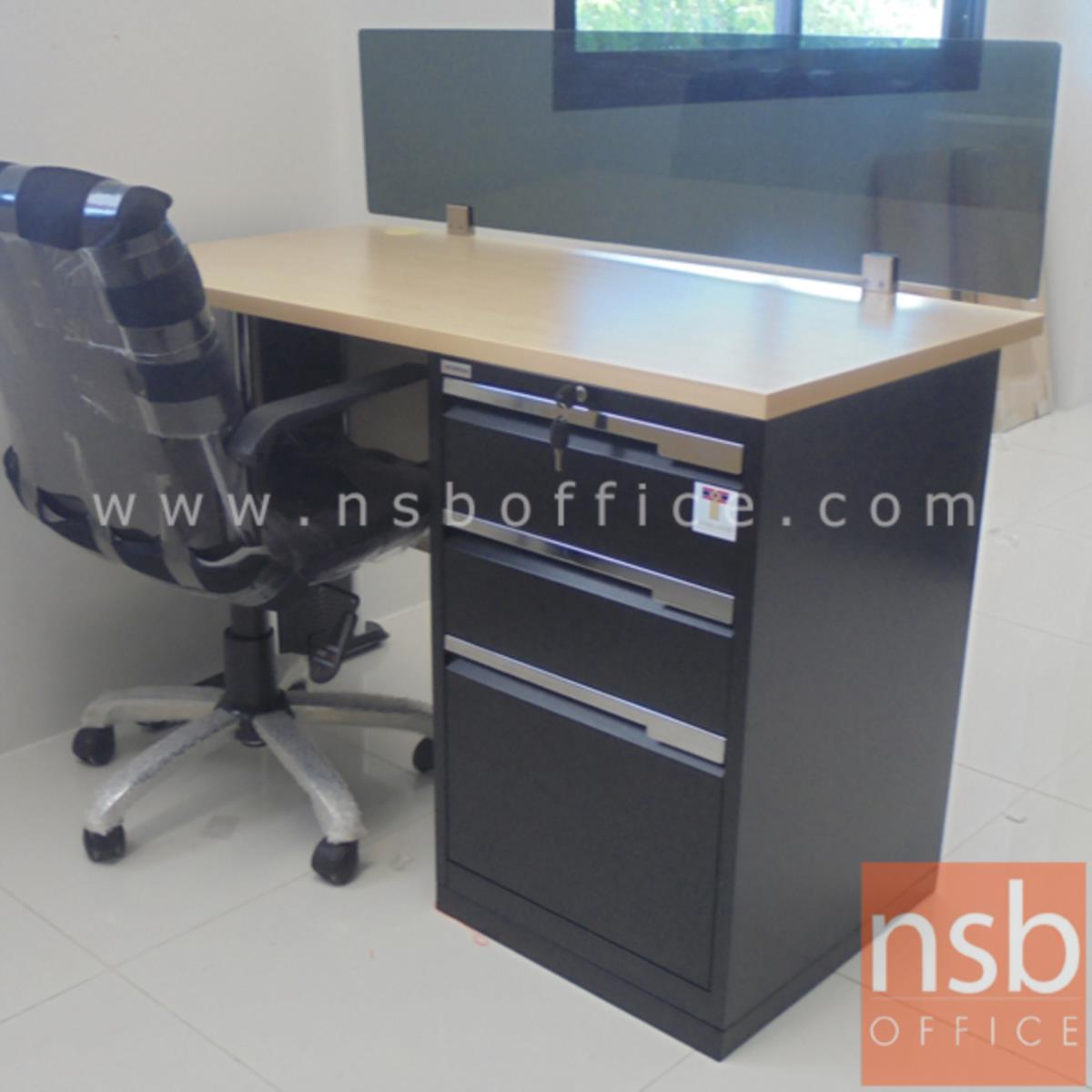 A18A050: โต๊ะทำงาน 3 ลิ้นชัก มีบังโป๊ รุ่น Aeronic (แอโรนิค) ขนาด 120W ,135W ,150W cm. ขาเหล็ก