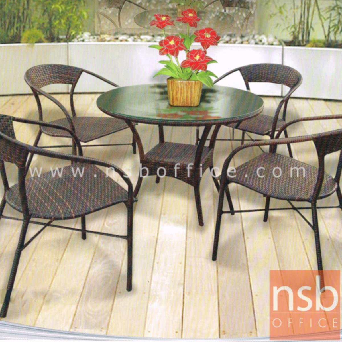 โต๊ะหวายเทียมหน้า TOP กระจก ขนาด 80Di*70H cm.