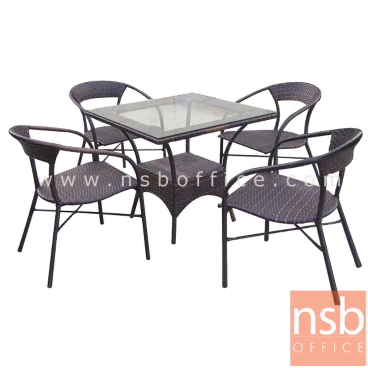 1 ชุดประกอบด้วย โต๊ะหวายเทียมหน้าTOPกระจก / เก้าอี้หวายเทียม