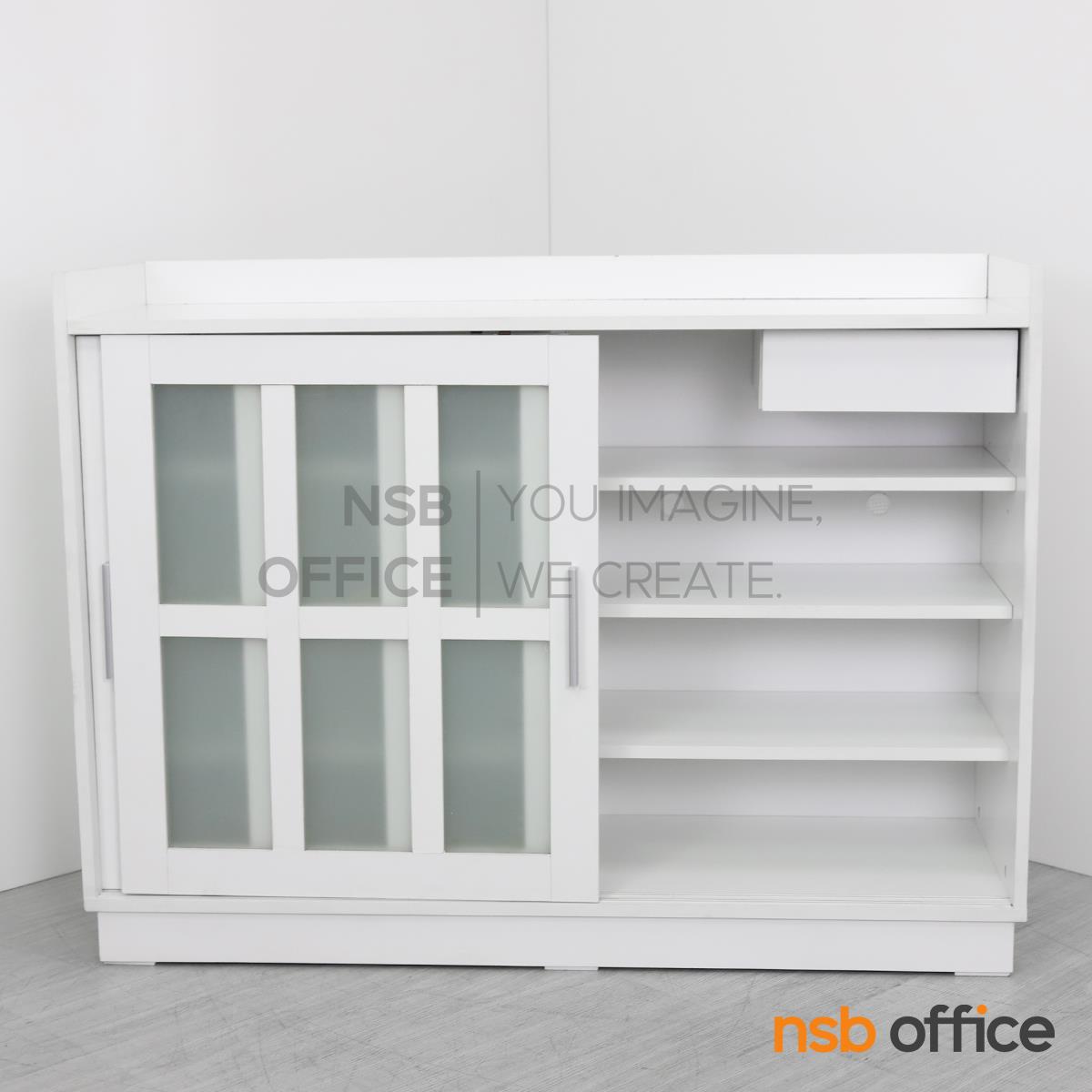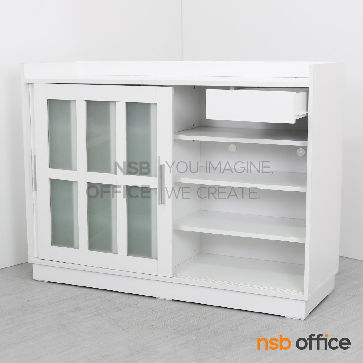 บานเลื่อนเฟรมกระจก สวยทันสมัย / ด้านบนตู้มีขอบกันตก วางของได้ /ผลิตสีขาว
