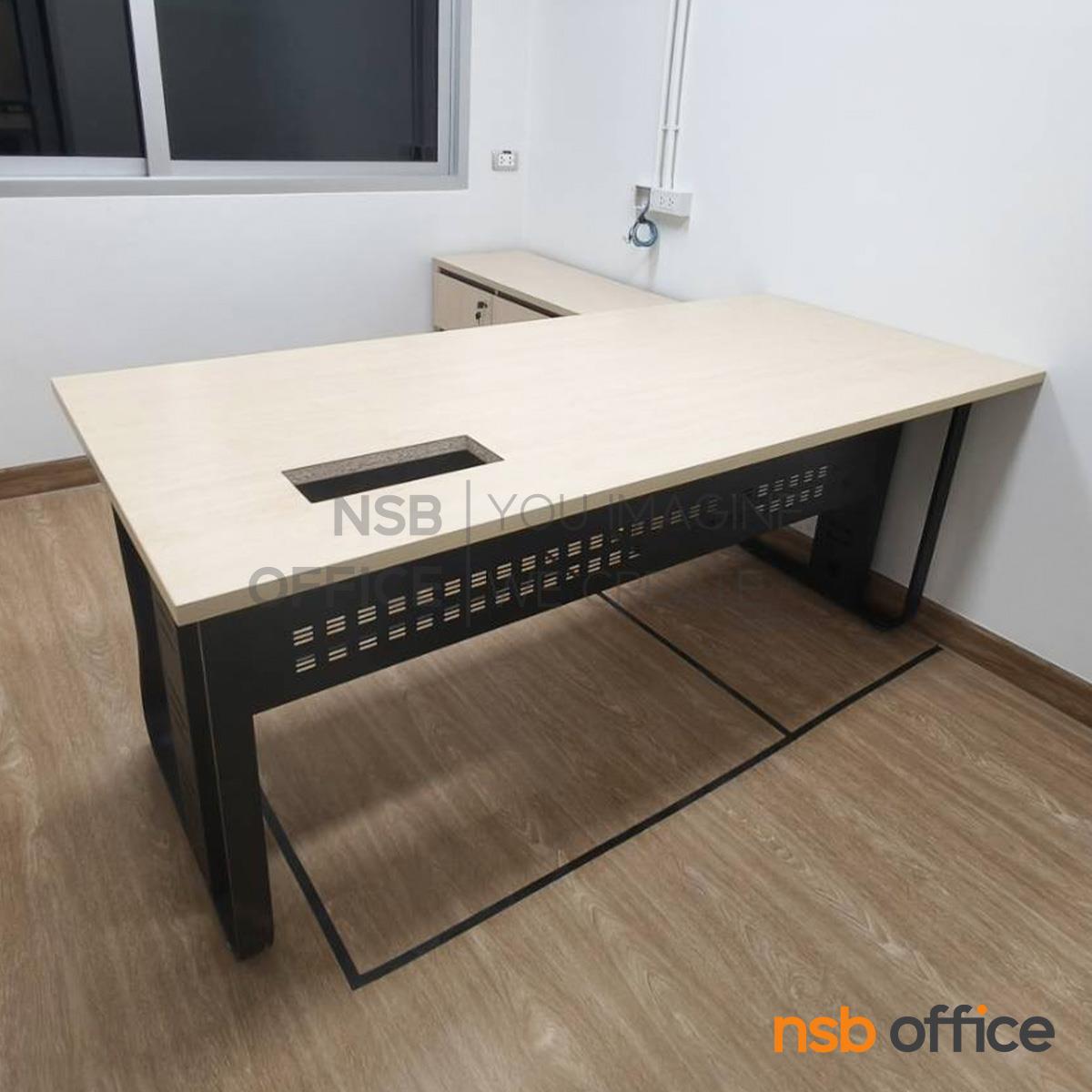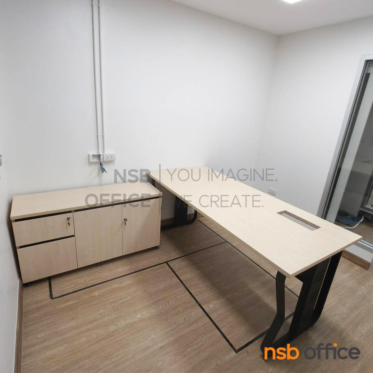 : โต๊ะผู้บริหารทรงสี่เหลี่ยม รุ่น Cameo (คามิโอ) ขนาด 180W cm. ตู้ข้างล้อเลื่อน ขาเหล็ก พร้อมรางไฟ A24A027
