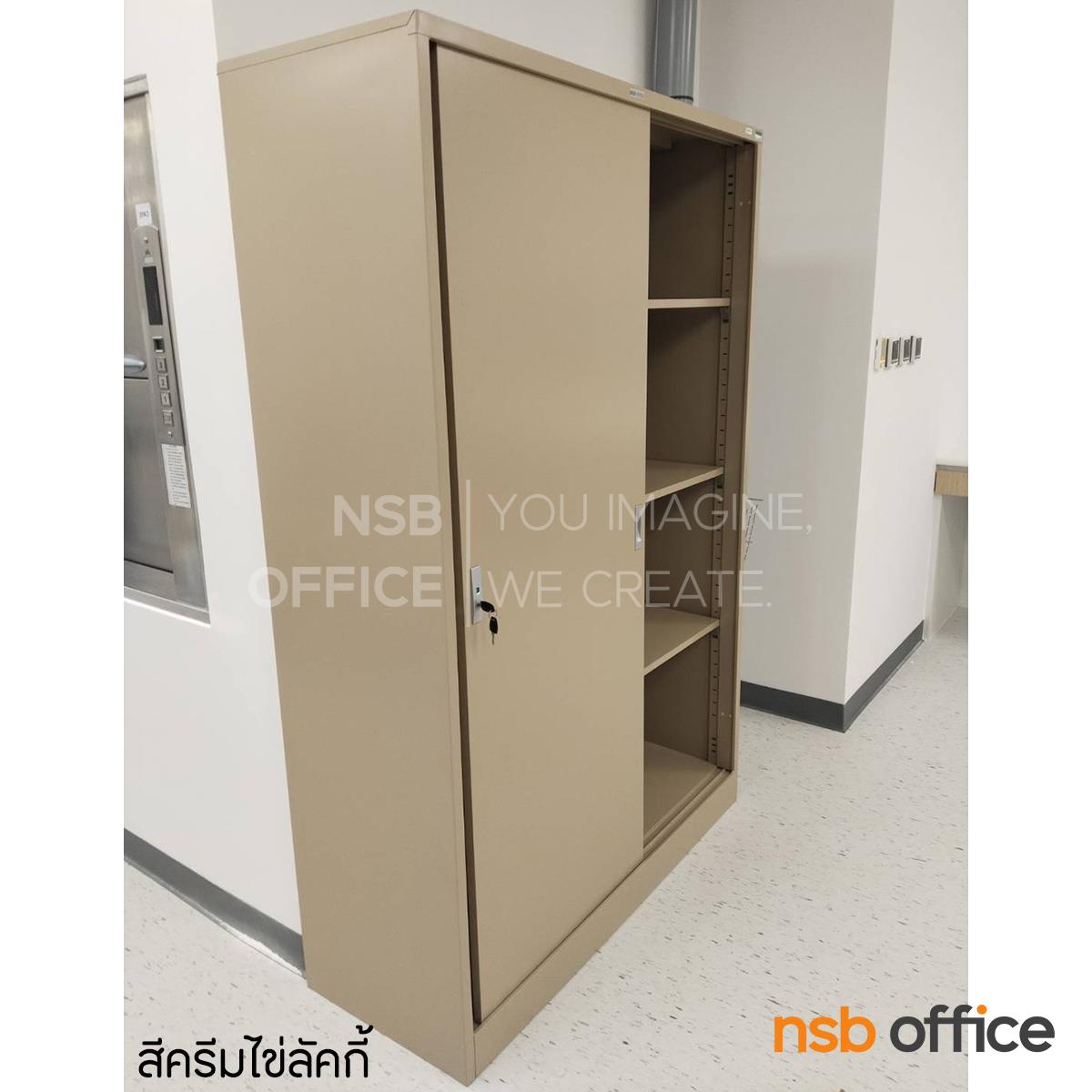 : ตู้เอกสารเหล็กบานเลื่อนทึบสูง รุ่น Carmine (คาร์ไมน์) ขนาด 4 ฟุต 121.8W*183H cm. กุญแจล็อค