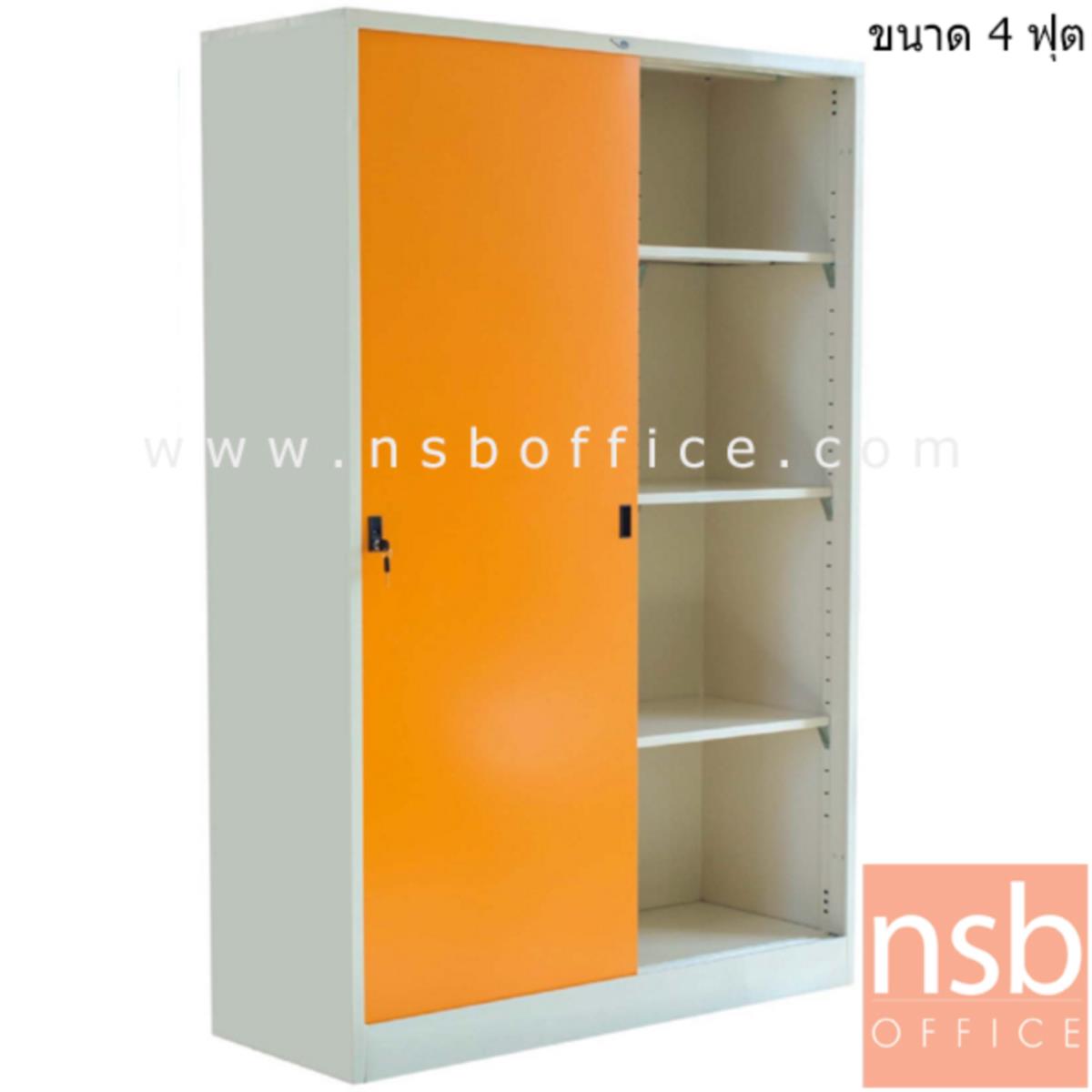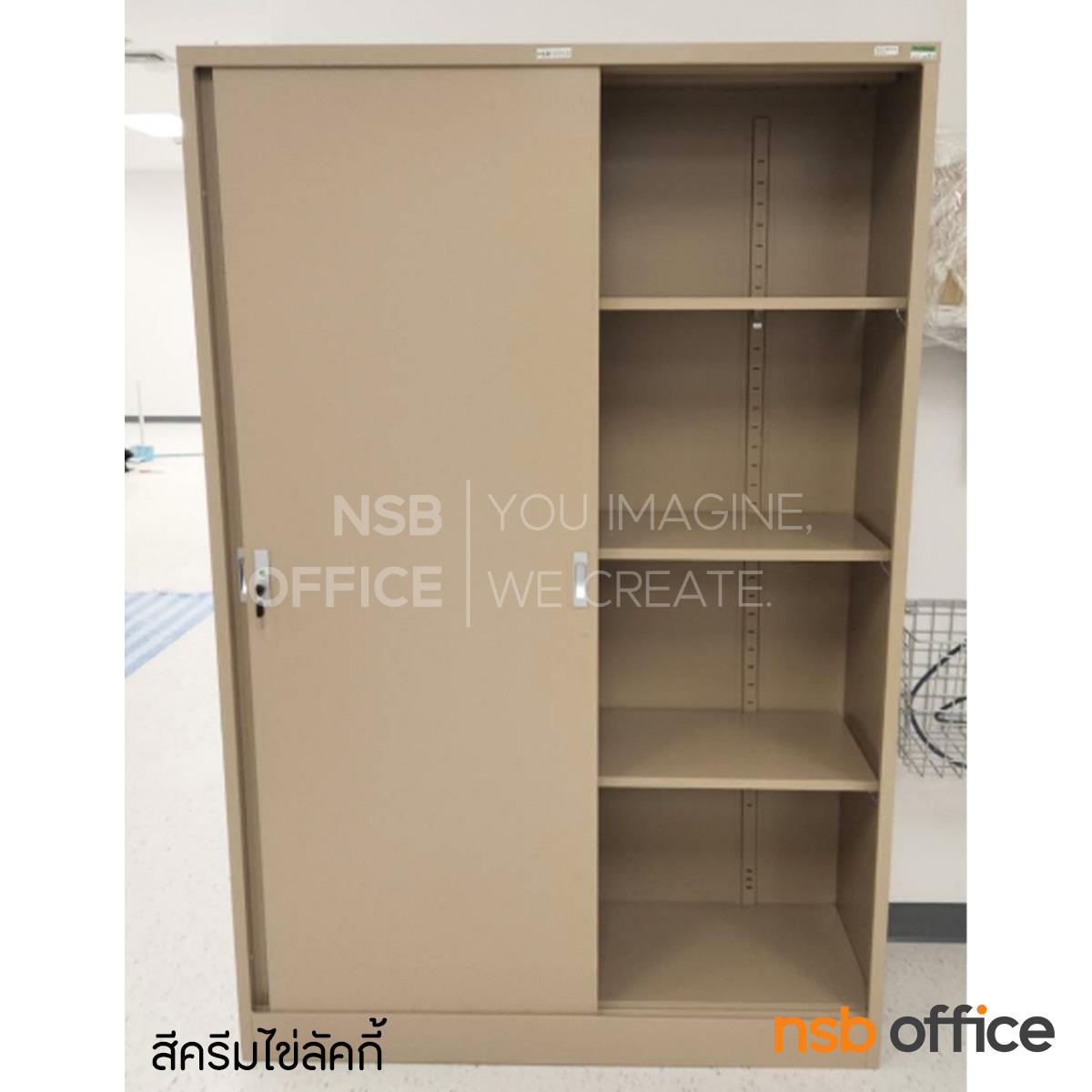 E07A043: ตู้เอกสารเหล็กบานเลื่อนทึบสูง รุ่น Carmine (คาร์ไมน์) ขนาด 4 ฟุต 121.8W*183H cm. กุญแจล็อค