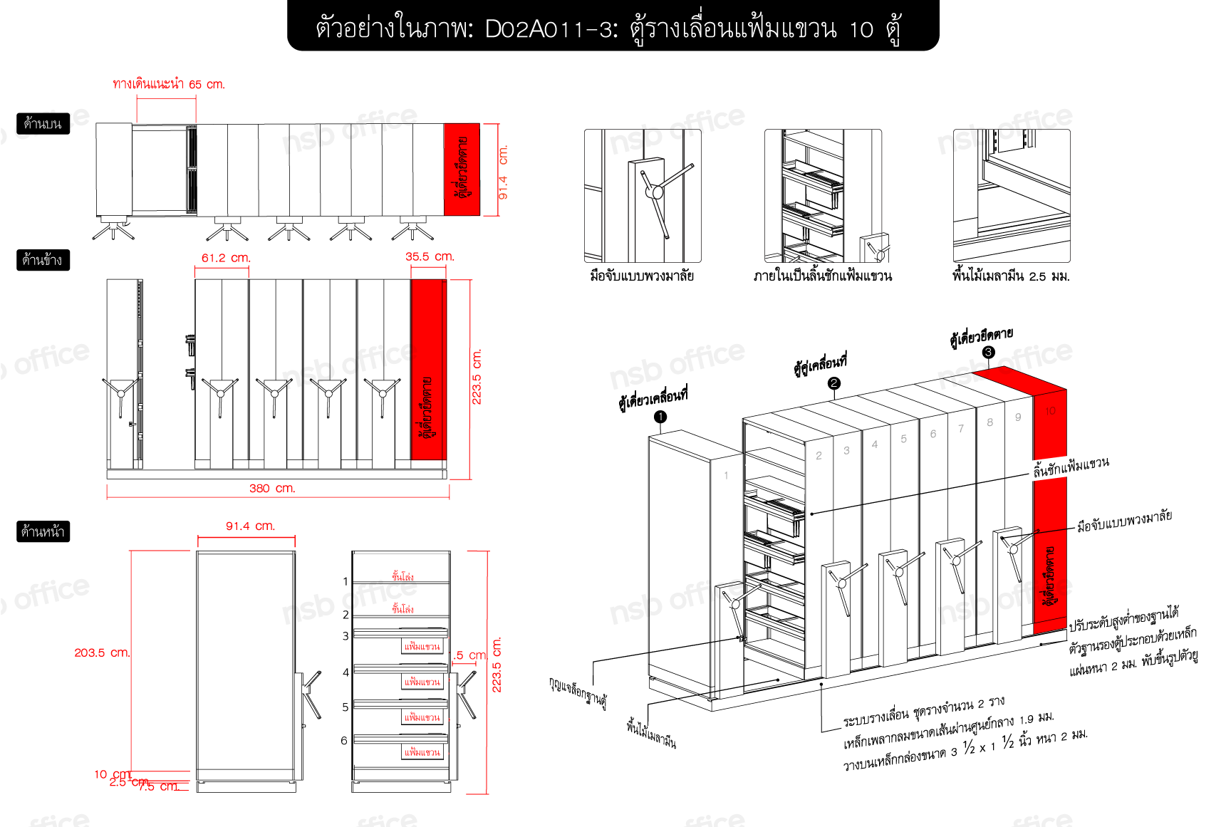 อธิบายขนาดตู้รางเลื่อน D02A011