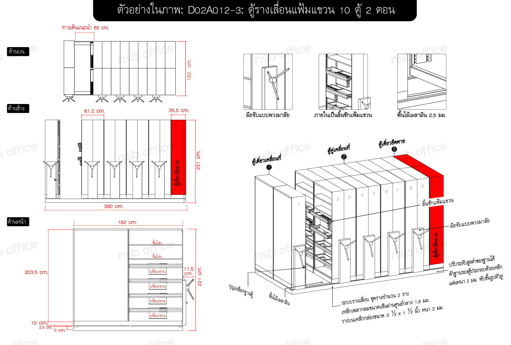อธิบายขนาดตู้รางเลื่อน D02A012