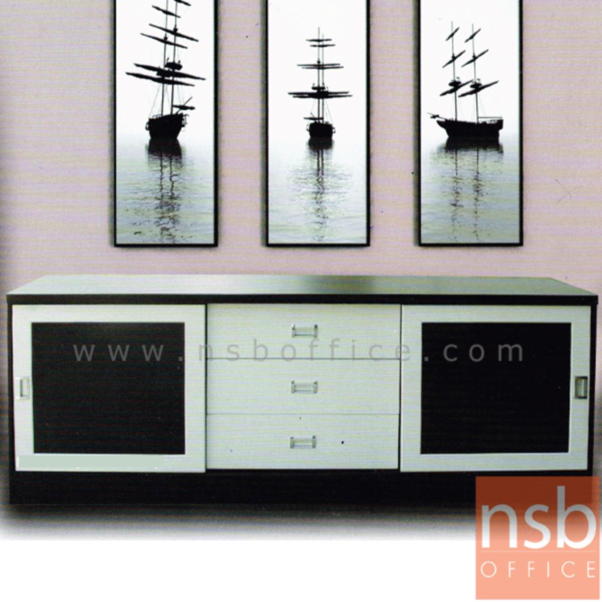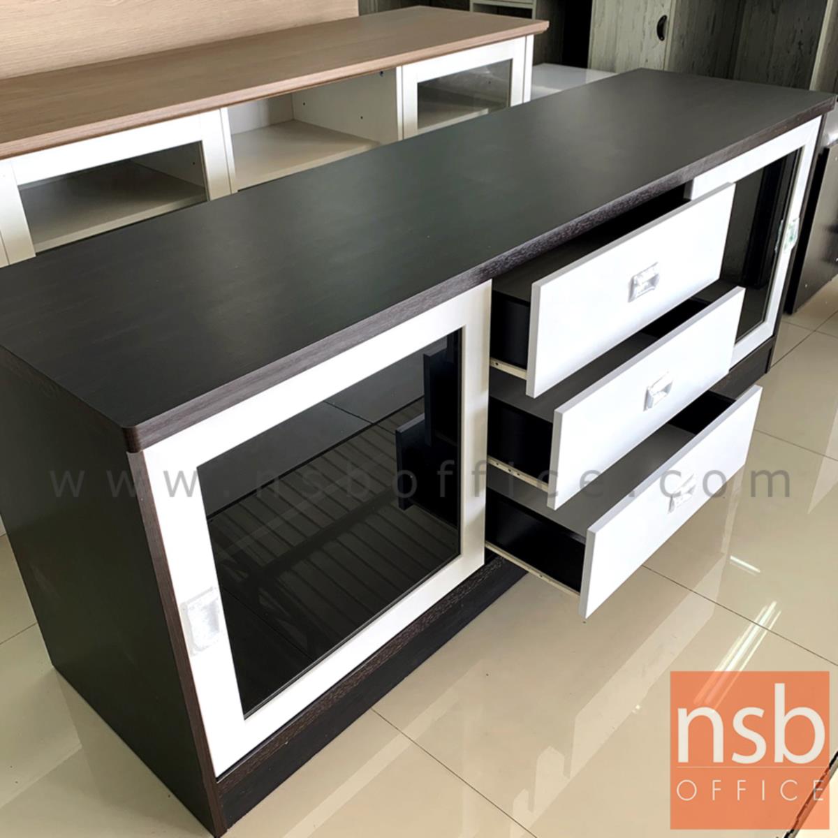 C08A021: ตู้วางทีวี 3 ลิ้นชักกลาง 2 บานลื่อนกระจกซ้าย-ขวา รุ่น Ackles ( แอคเคิลส์) ขนาด 180W*72H cm.