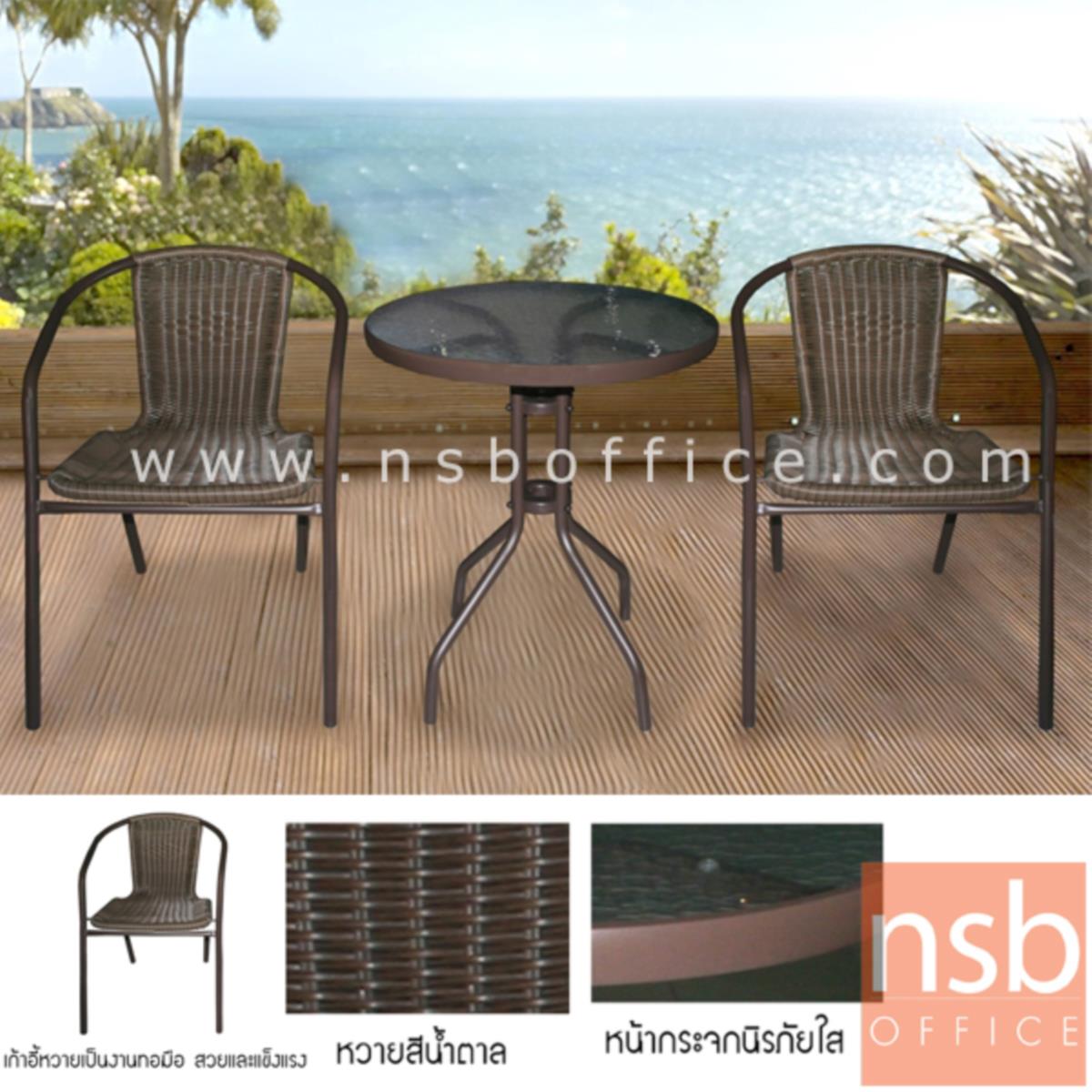 : ชุดโต๊ะน้ำชาหวายเทียม 2 ที่นั่ง หน้า TOP โต๊ะกระจก รุ่น Destiny (เดสทินีส์)