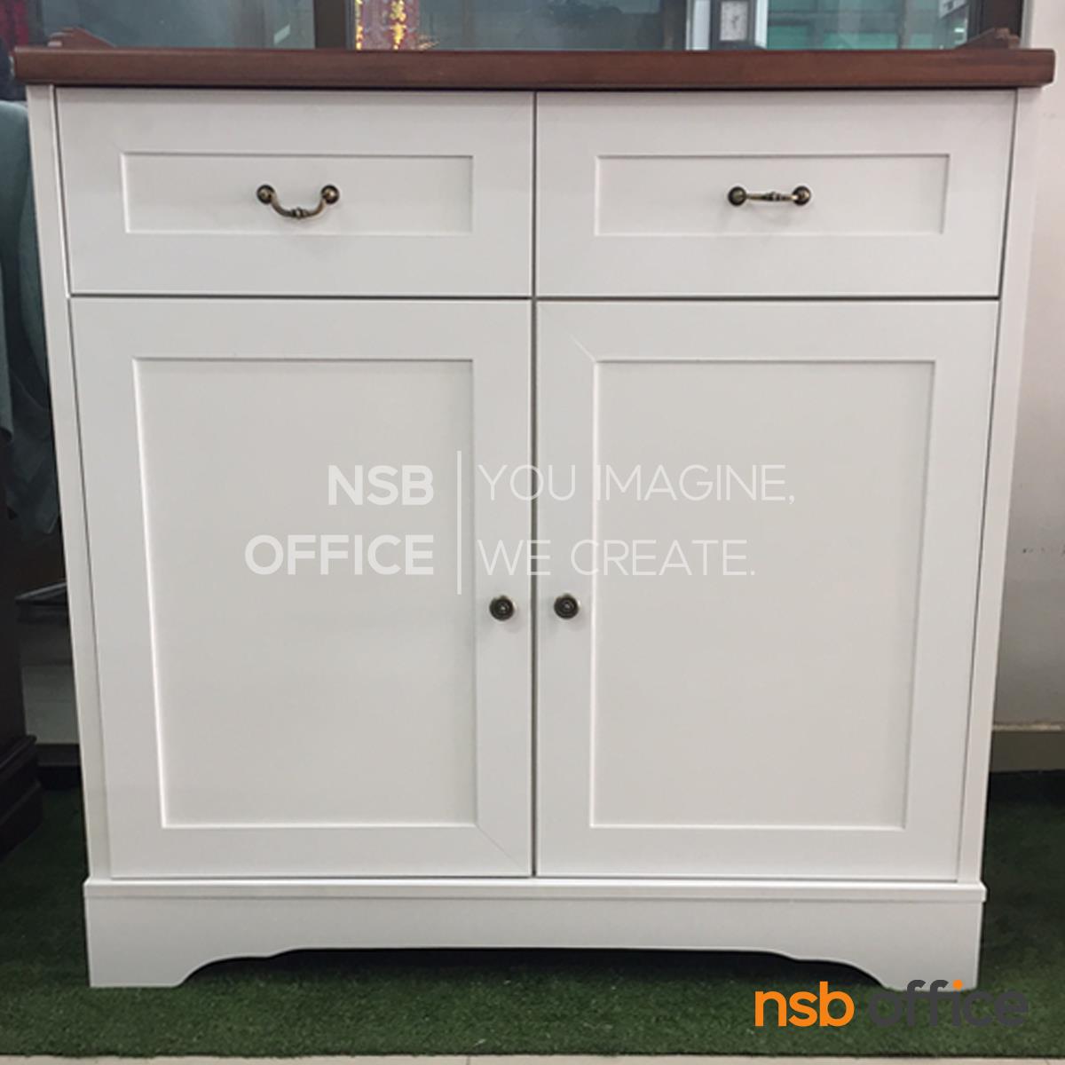 : ตู้อเนกประสงค์ 2 ลิ้นชัก 2 บานเปิด รุ่น Remington (เรมิงตัน) ขนาด 100W*69.5H cm. สีขาวตัดโอ๊คแนวคลาสสิค