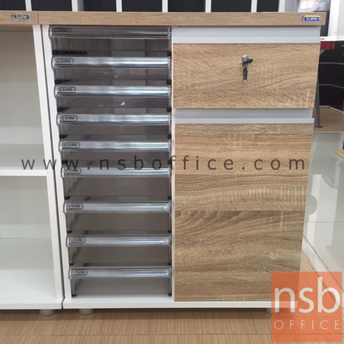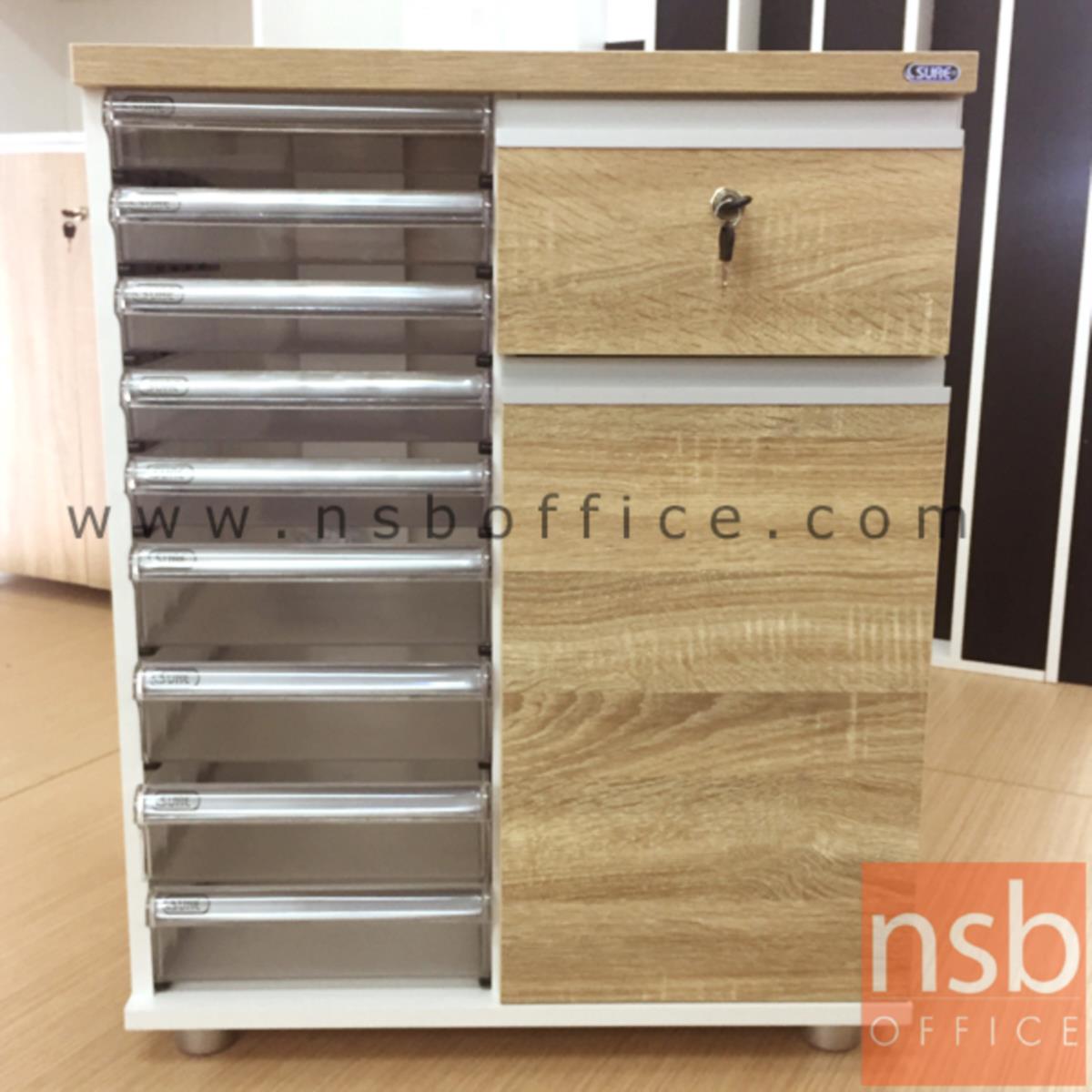 ซ้าย 9 ลิ้นชักพลาติดใส่เอกสาร A4 (ลิ้นชักใหญ่วางกระดาษได้ประมาณ 500 - 600 แผ่นต่อลิ้นชัก)