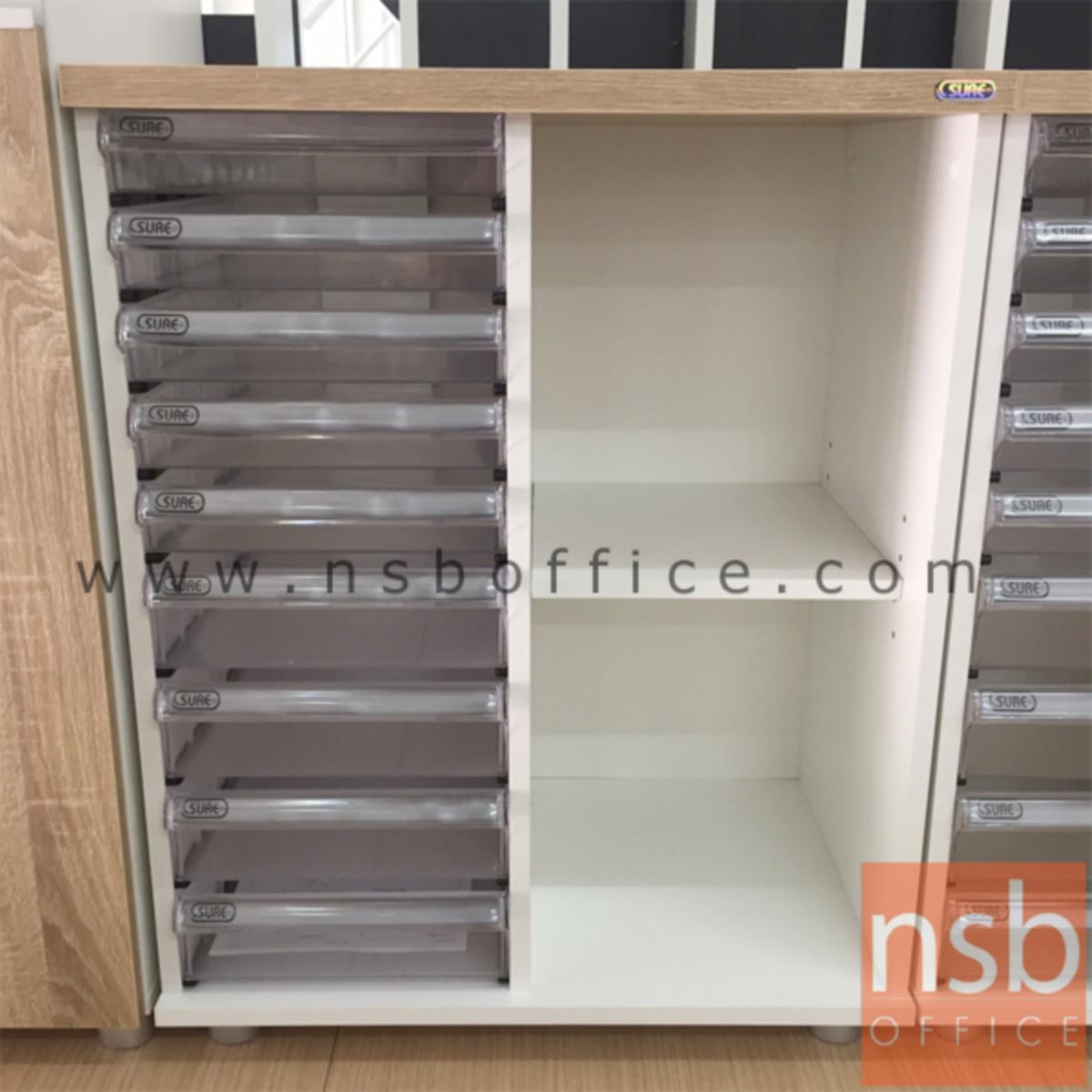 : ตู้เอกสาร สูง 75H cm. 2 ช่องโล่ง 9 ลิ้นชัก รุ่น Someday (ซัมเดย์) เมลามีน สีเนเจอร์ทีค-ขาว