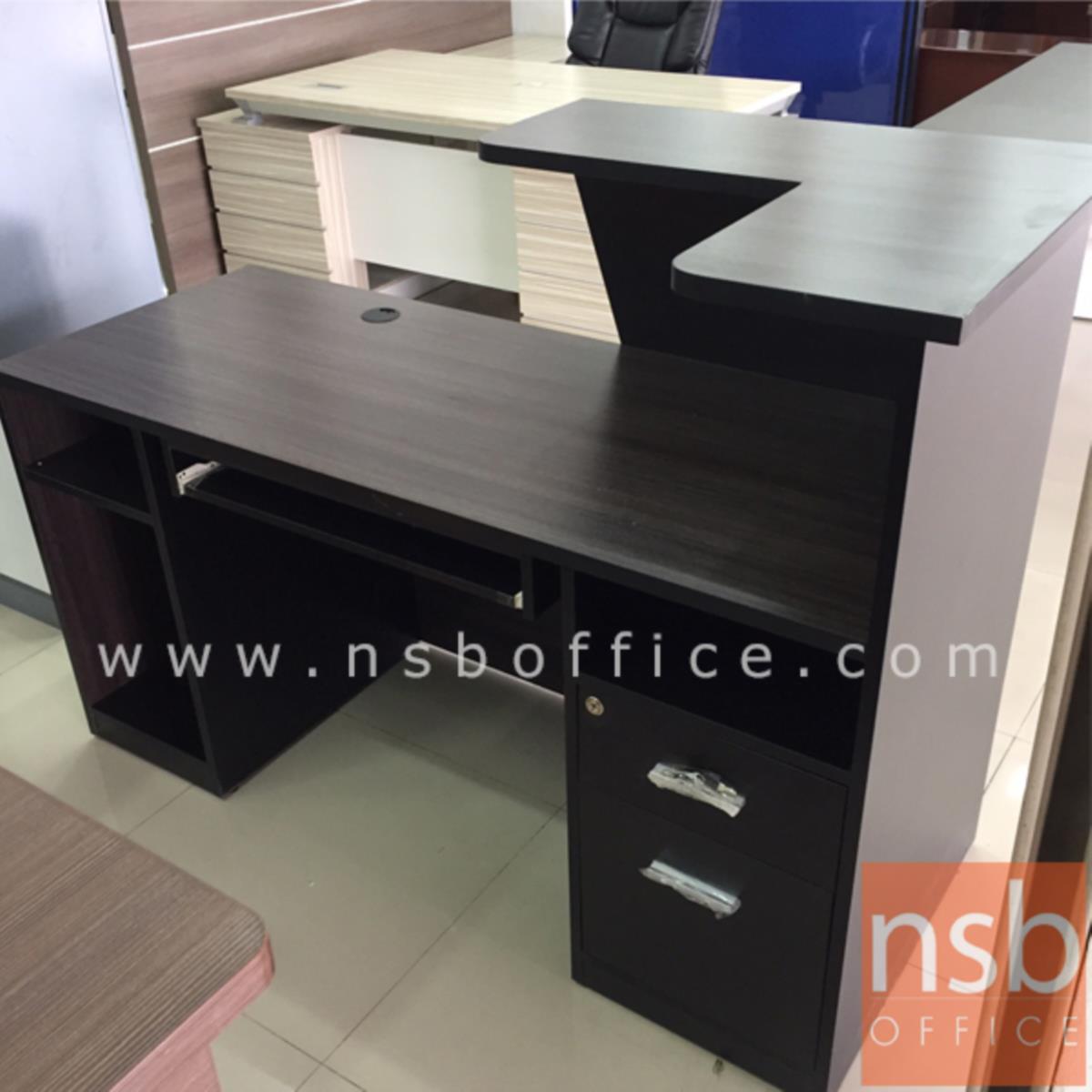 A11A001: เคาน์เตอร์ผสมโต๊ะคอมพิวเตอร์หน้าเฉียง 2 ลิ้นชัก รุ่น Blackcurrant (แบล็คเคอร์แรนท์) ขนาด 150W cm. พร้อมรางคีย์บอร์ดและที่วางซีพียู