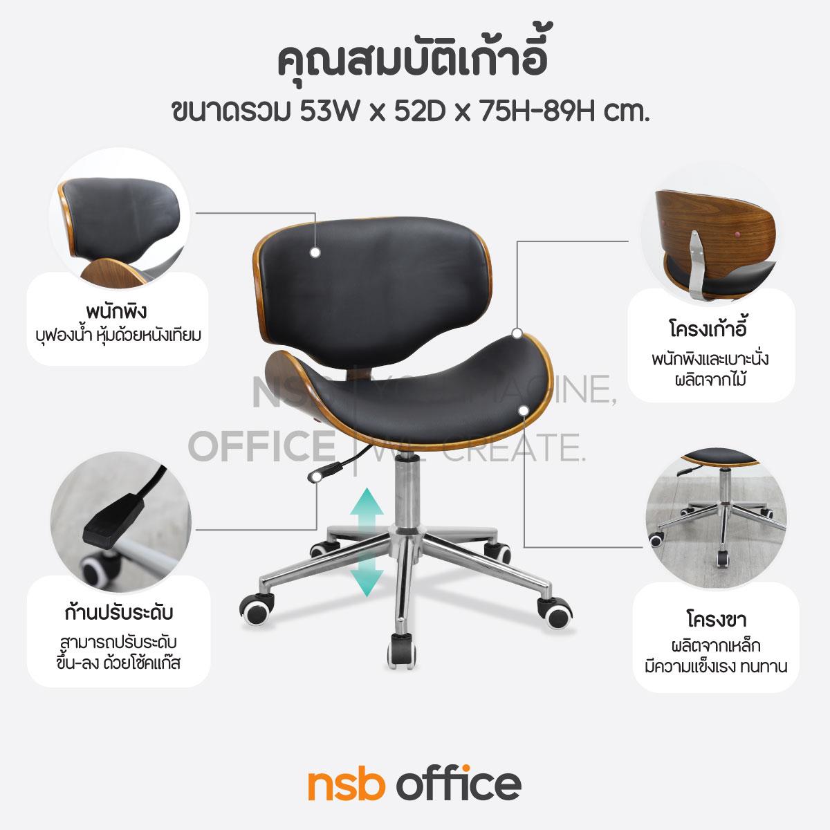 : เก้าอี้โมเดิร์นหนังเทียมล้อเลื่อน รุ่น Cross (ครอส) ขนาด 52.5W cm. โครงขาเหล็กชุบโครเมี่ยม