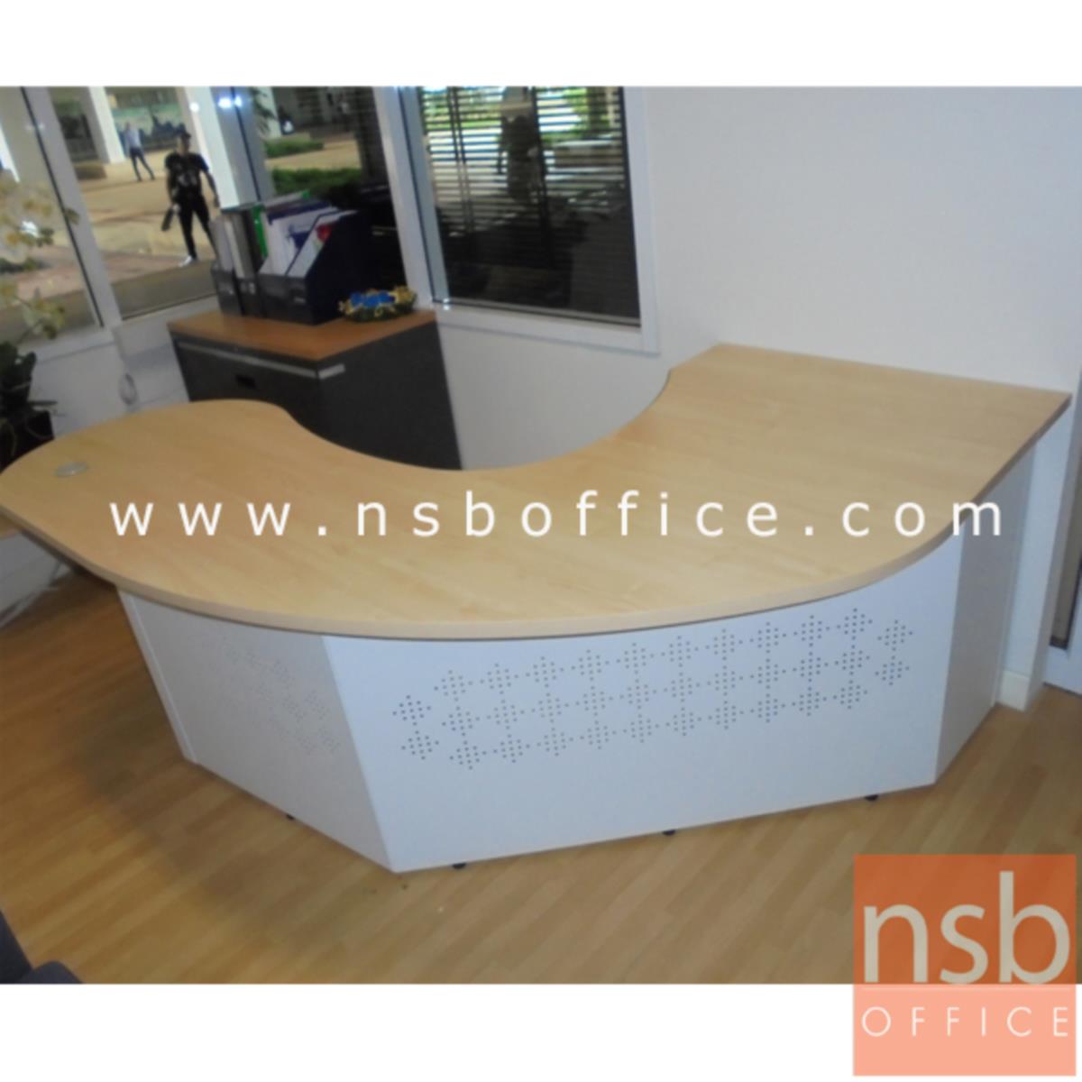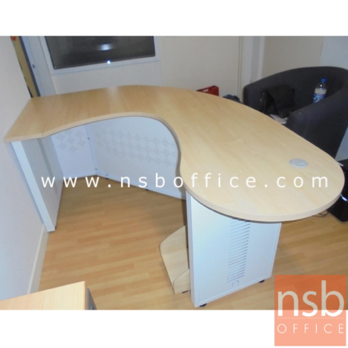 A11A005: เคาน์เตอร์หน้าโค้ง ขนาด 180W cm. พร้อมบังตาเหล็ก ขาเหล็ก