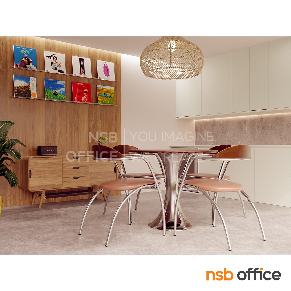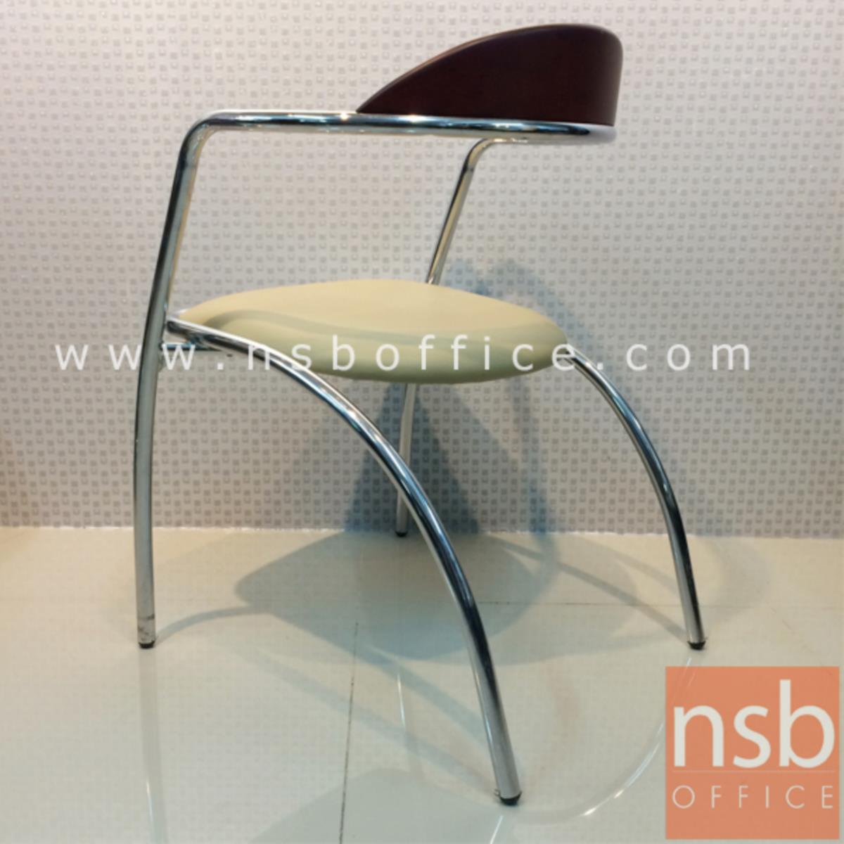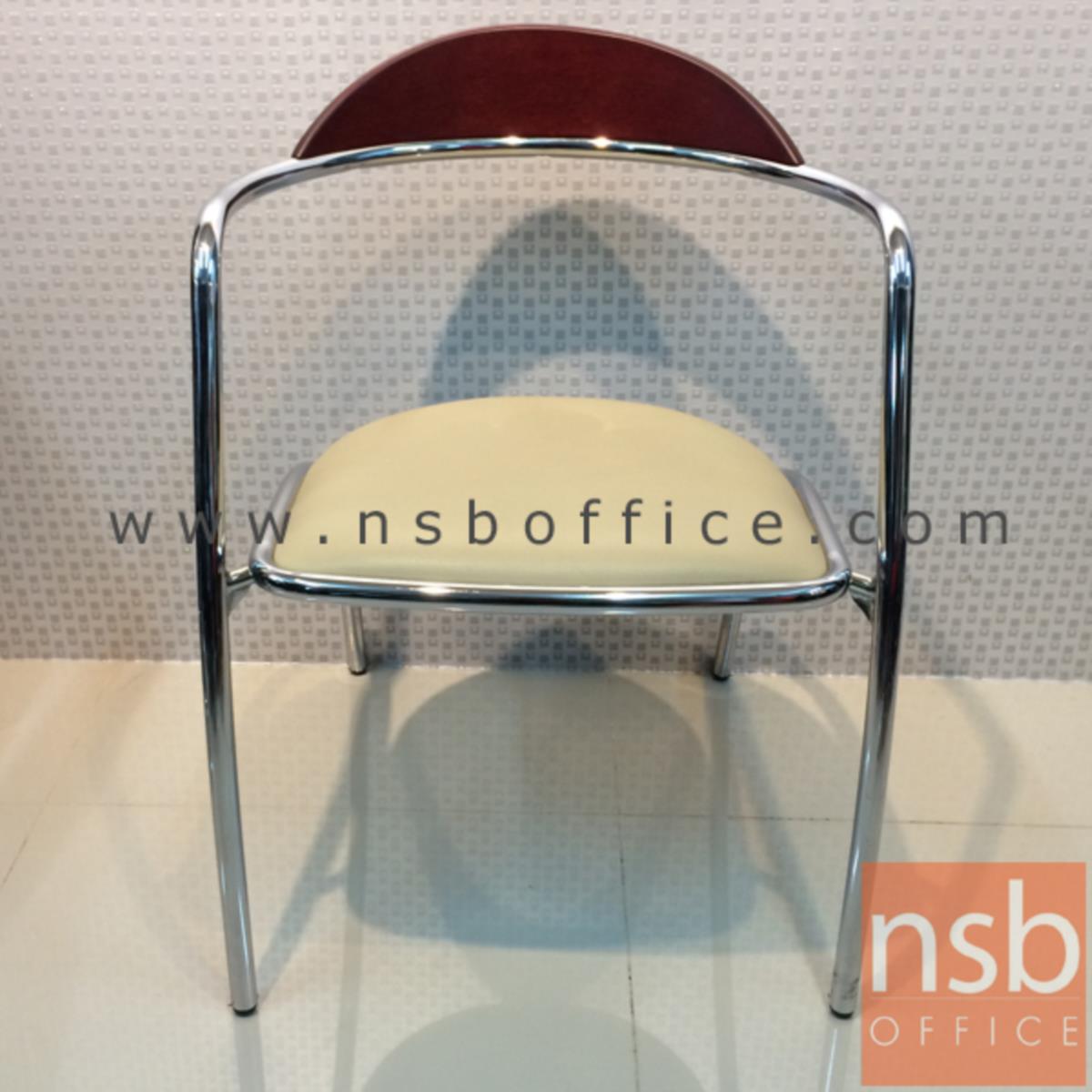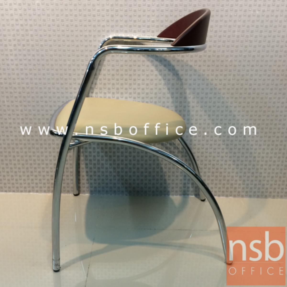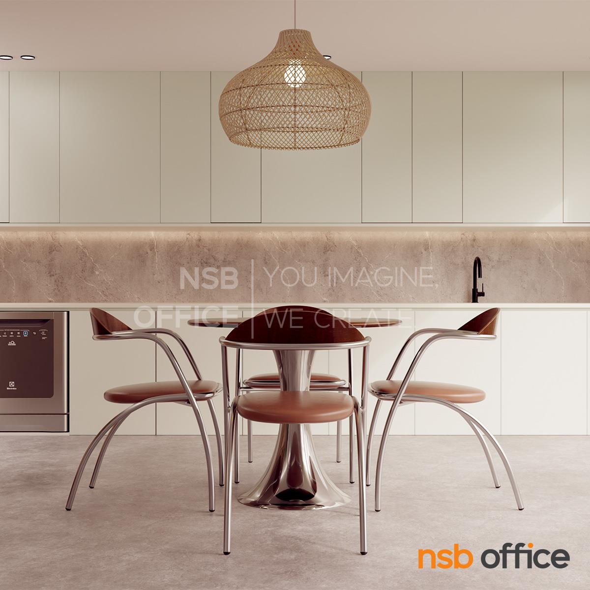 โครงเก้าอี้ผลิตจากเหล็กท่อกลมขนาด 22 มม.ดัดขึ้นรูปชุบโครเมี่ยม พร้อมลูกยางพลาสติกปิดปลายขา