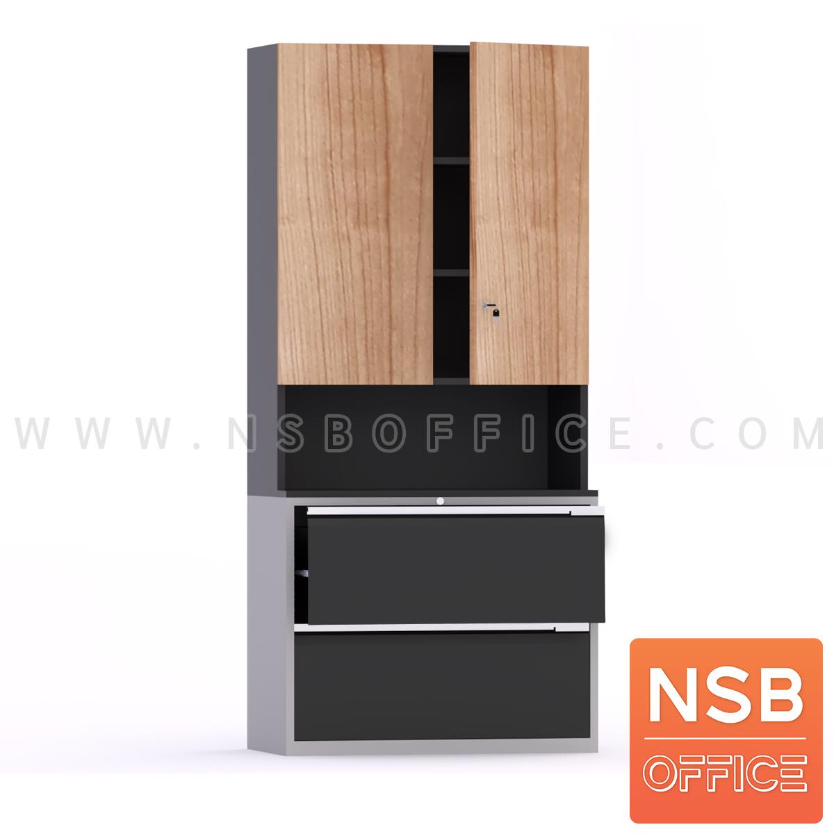 : ตู้เอกสาร 2 ตอน บนบานเปิด ล่างตู้เหล็กลิ้นชักแฟ้มแขวน รุ่น Lightning (ไลท์นิ่ง) (สินค้าพรีออเดอร์ 30-45 วัน)