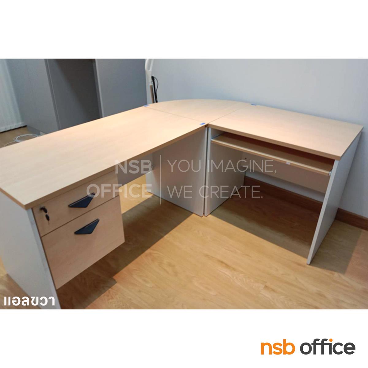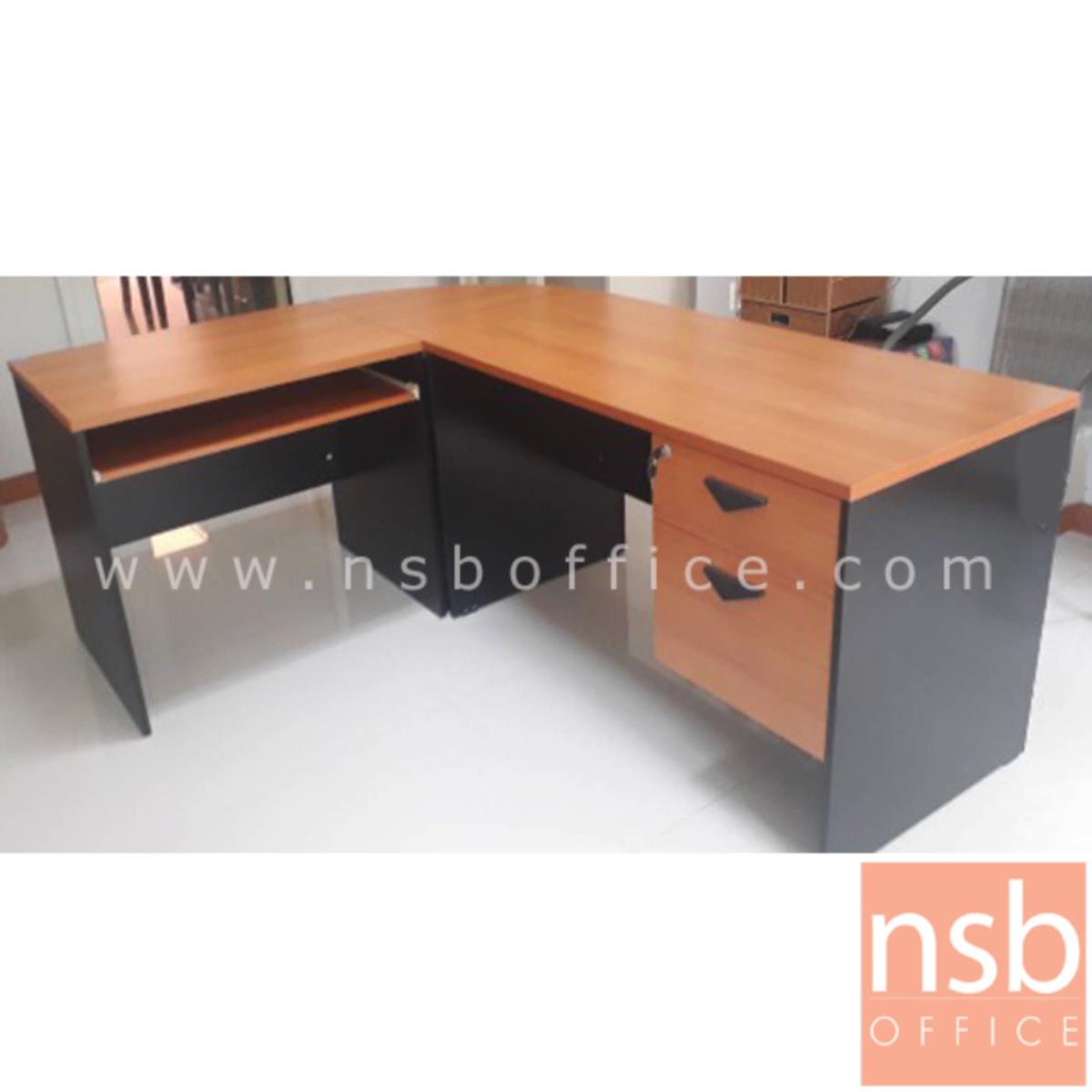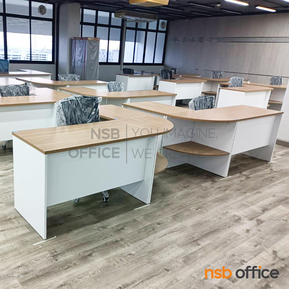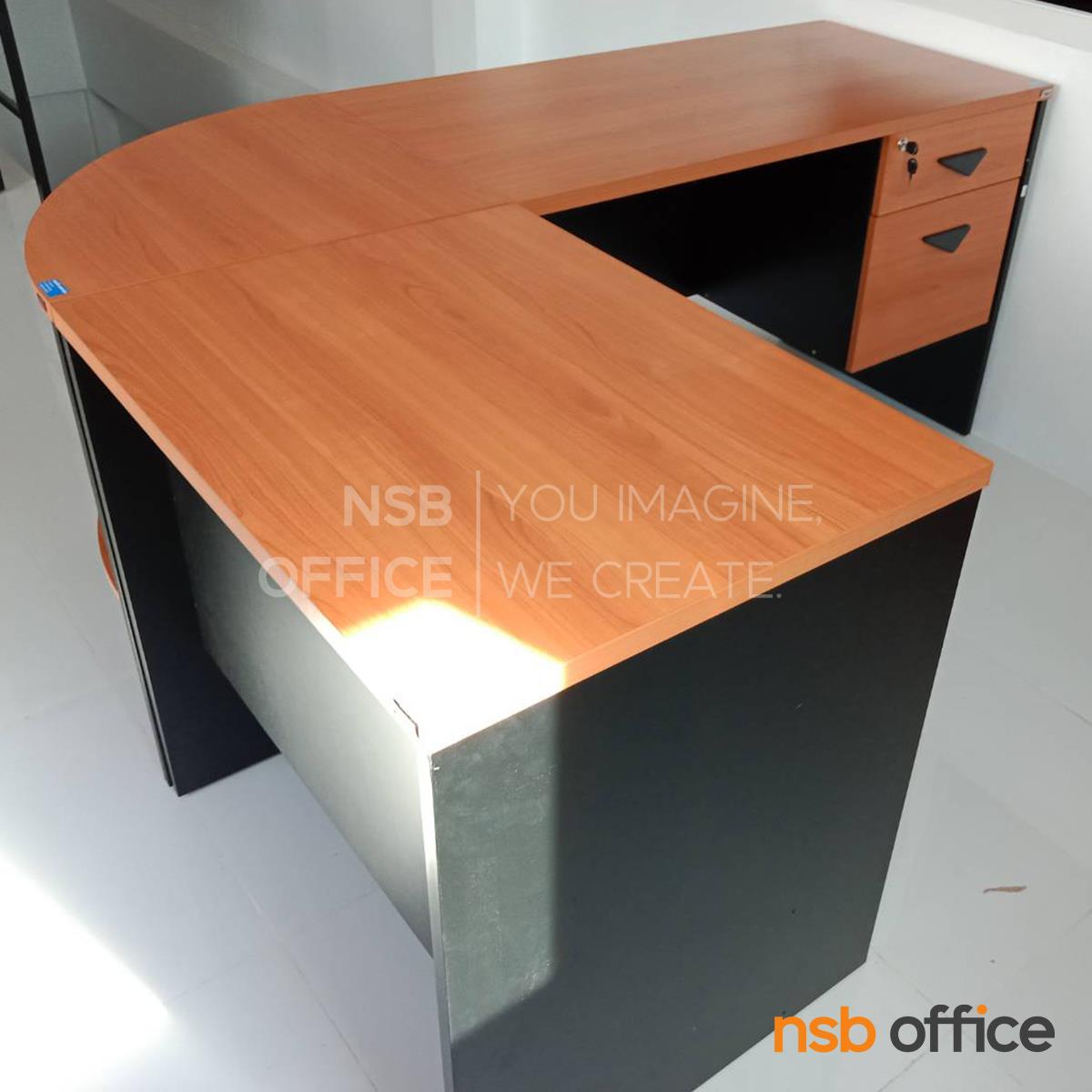 : โต๊ะทำงานตัวแอลมุมโค้ง 2 ลิ้นชัก รุ่น Timberlake (ทิมเบอร์เลก) ขนาด 180W1*140W2 cm. เมลามีน