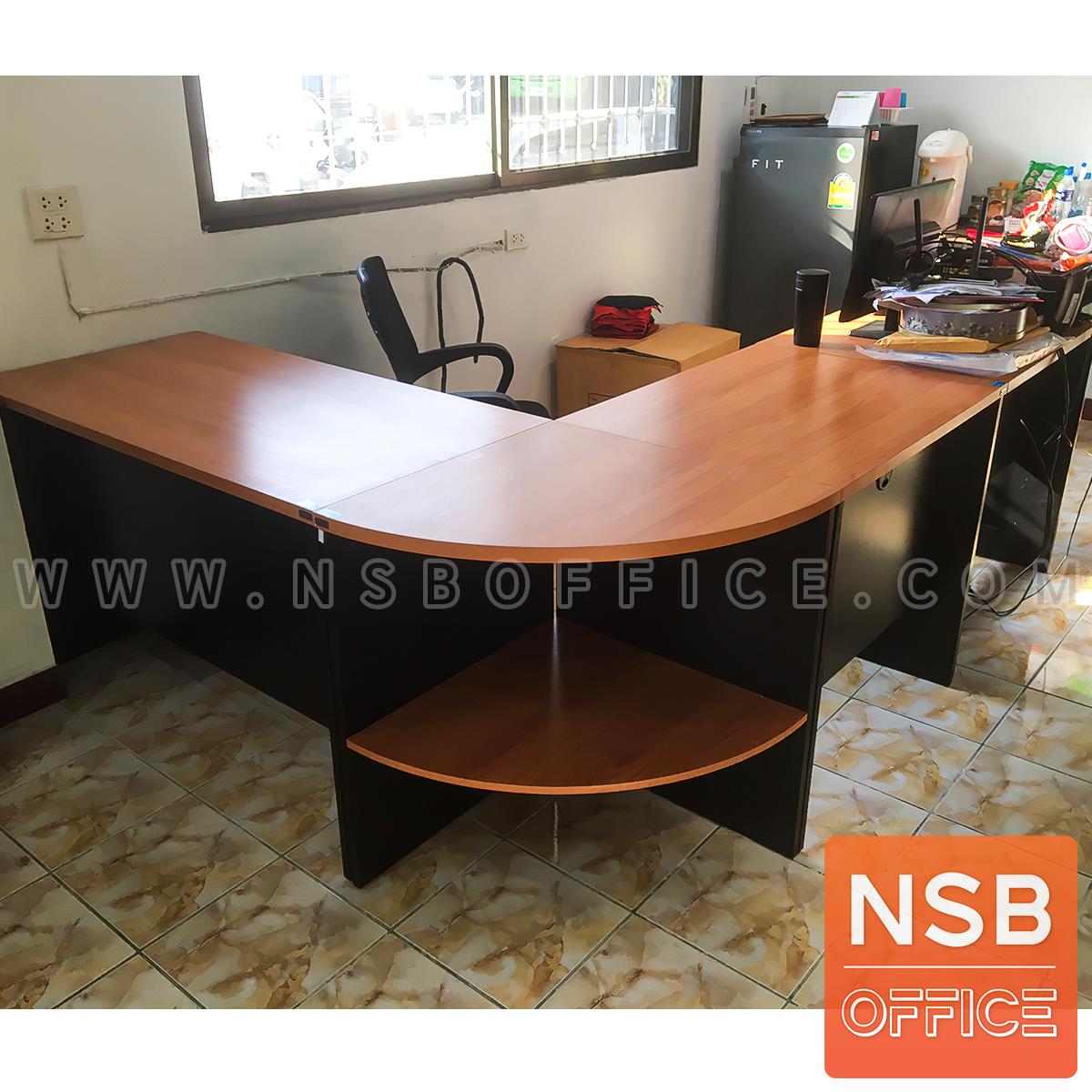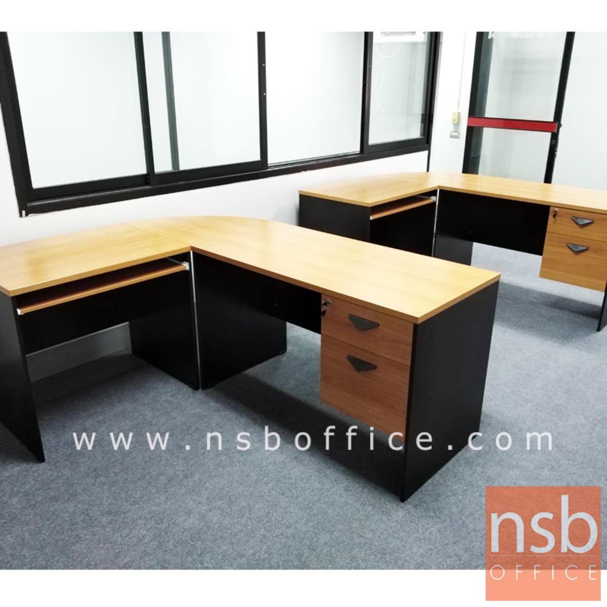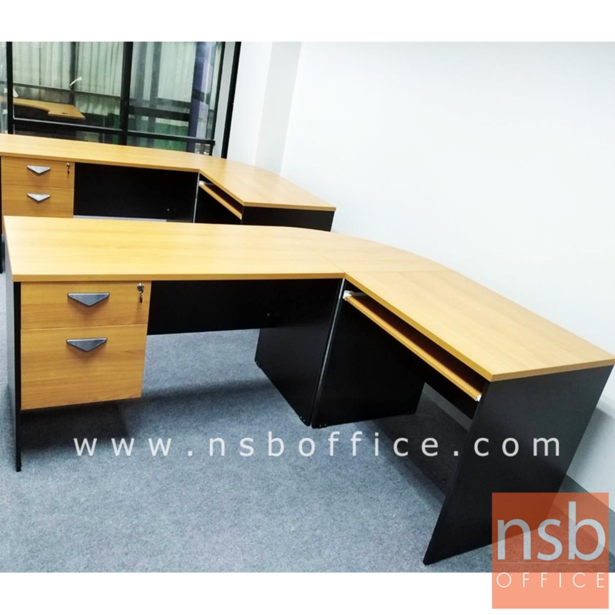 : โต๊ะทำงานตัวแอลมุมโค้ง 2 ลิ้นชัก รุ่น Timberlake (ทิมเบอร์เลก) ขนาด 180W1*140W2 cm. เมลามีน