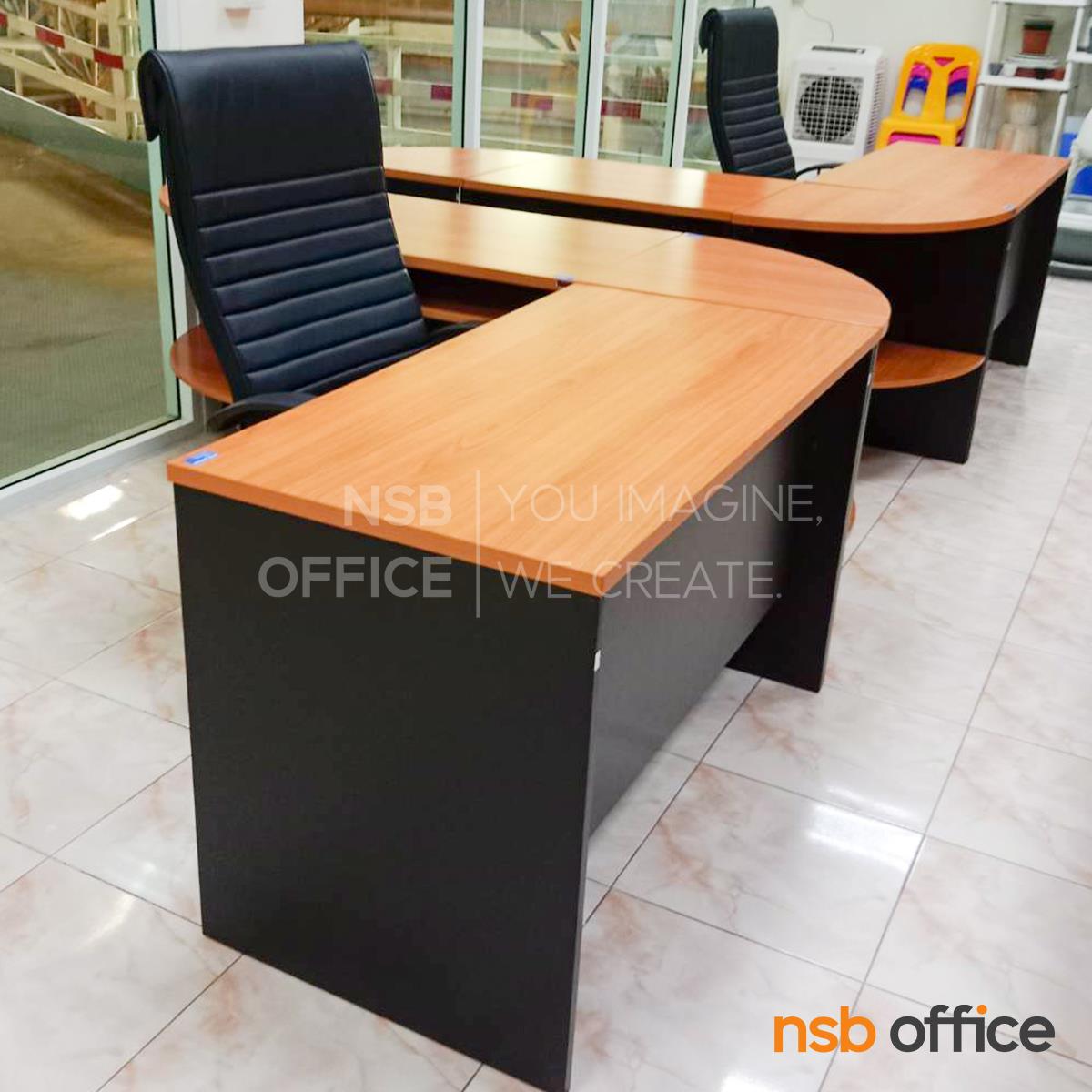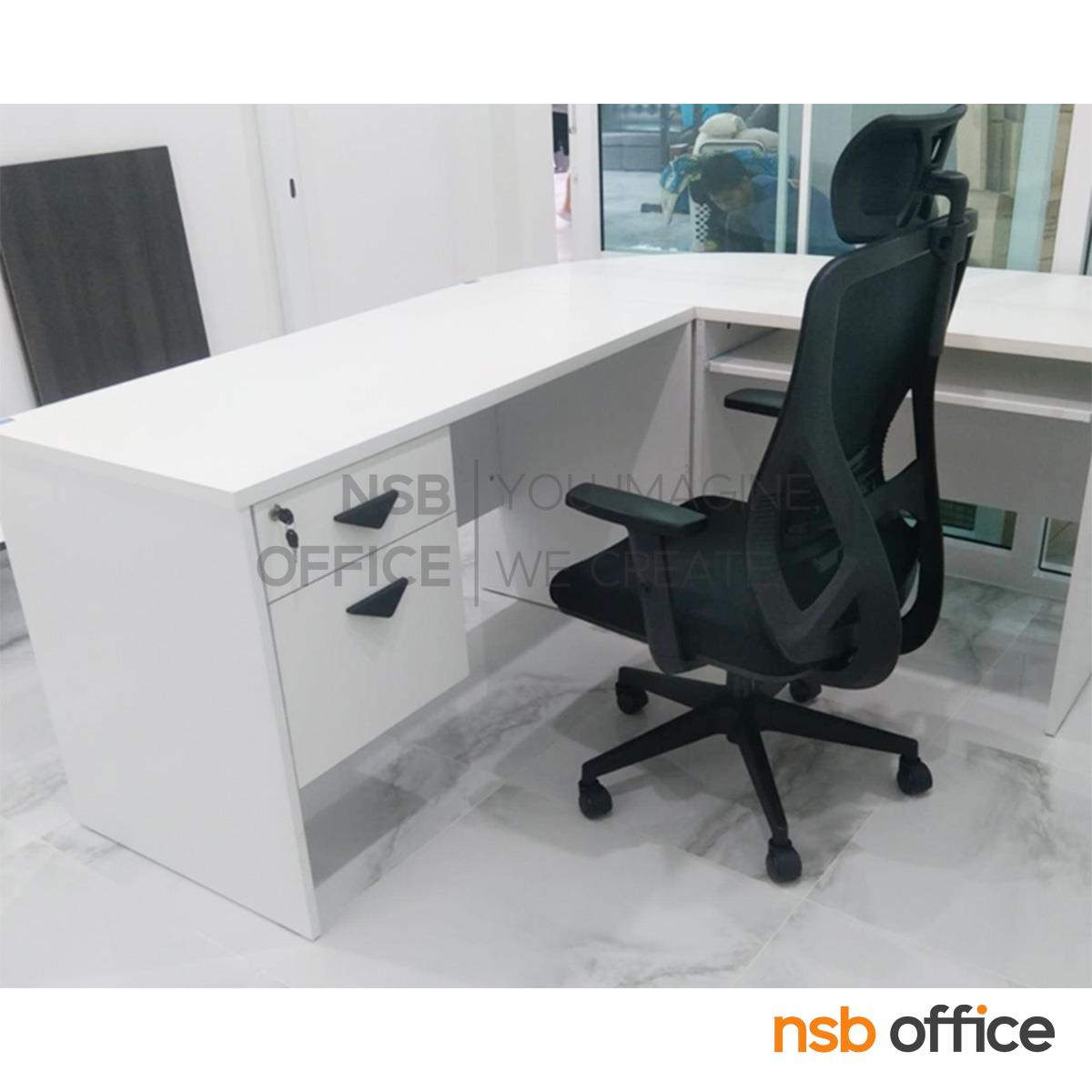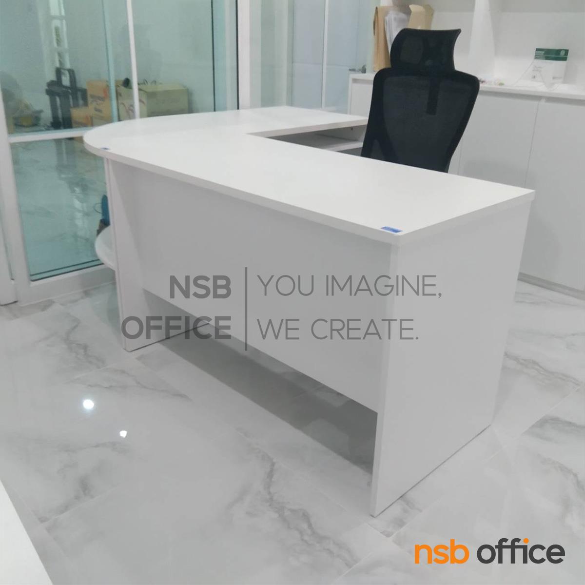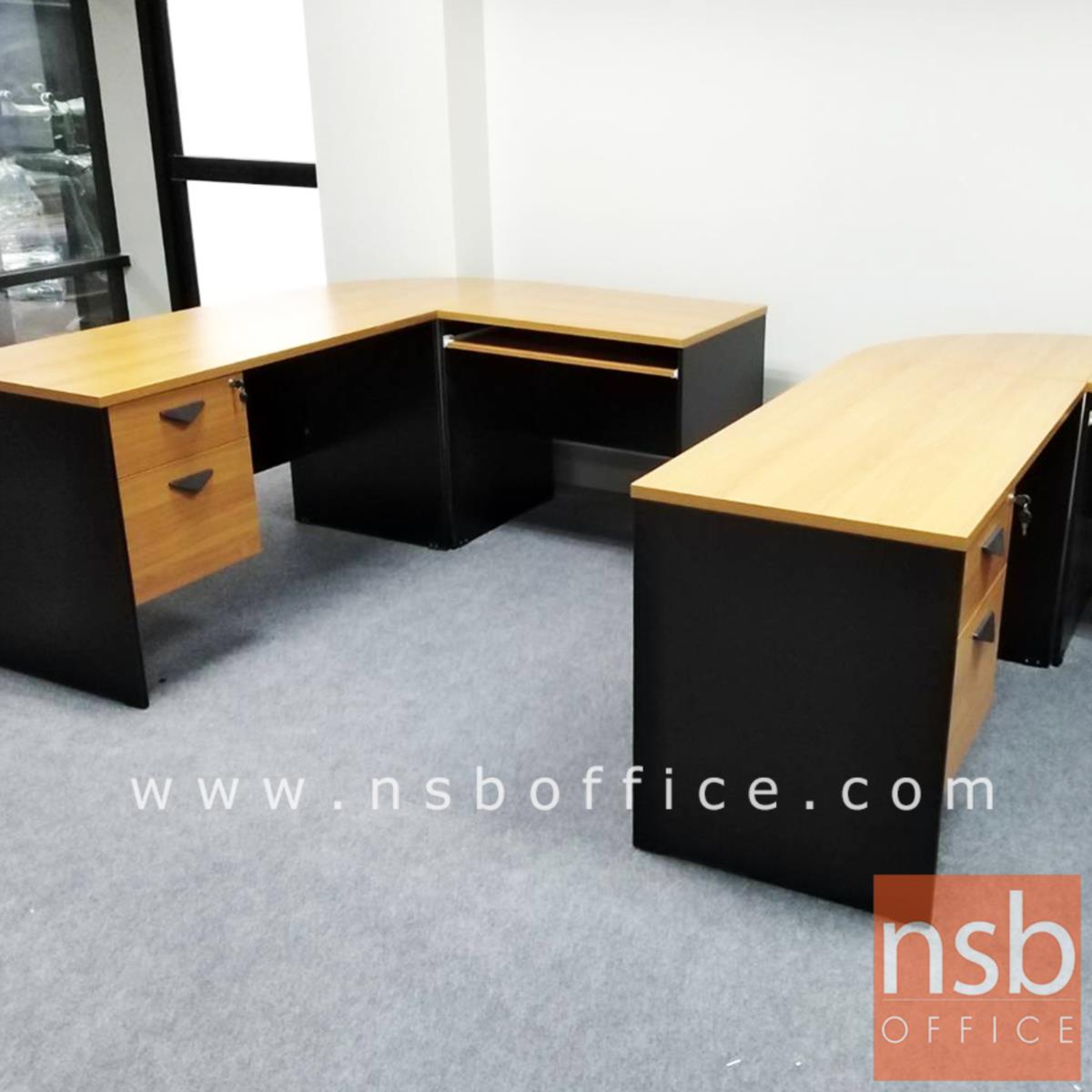 : โต๊ะทำงานตัวแอลมุมโค้ง 2 ลิ้นชัก รุ่น Timberlake (ทิมเบอร์เลก) ขนาด 180W1*140W2 cm. เมลามีน