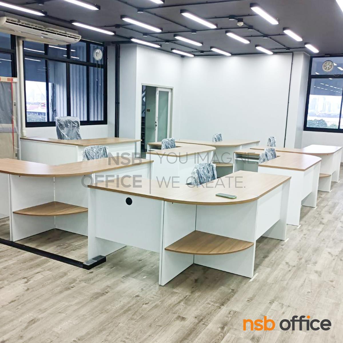 โต๊ะตัวมุมมีแผ่นชั้นกลาง มุมโค้ง R60 cm.