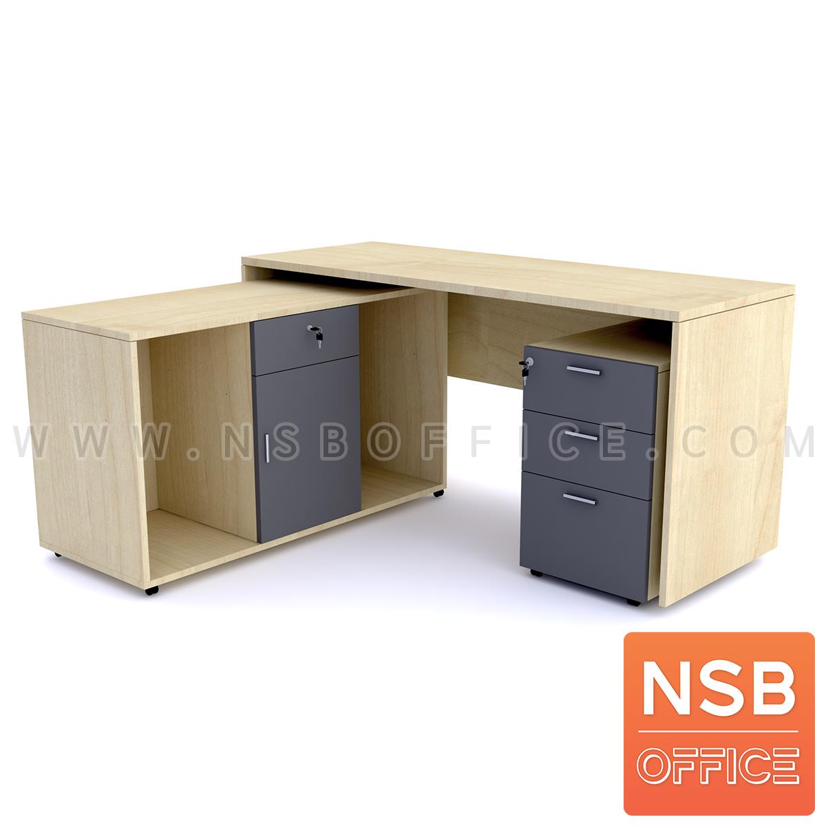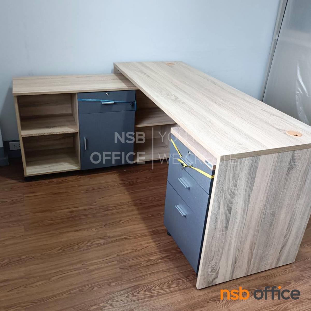 A13A164: โต๊ะทำงานตัวแอล (22/1/25) รุ่น Carolyn (แครอลีน) ขนาด 160W cm. พร้อมตู้ข้างและลิ้นชักข้างโต๊ะ