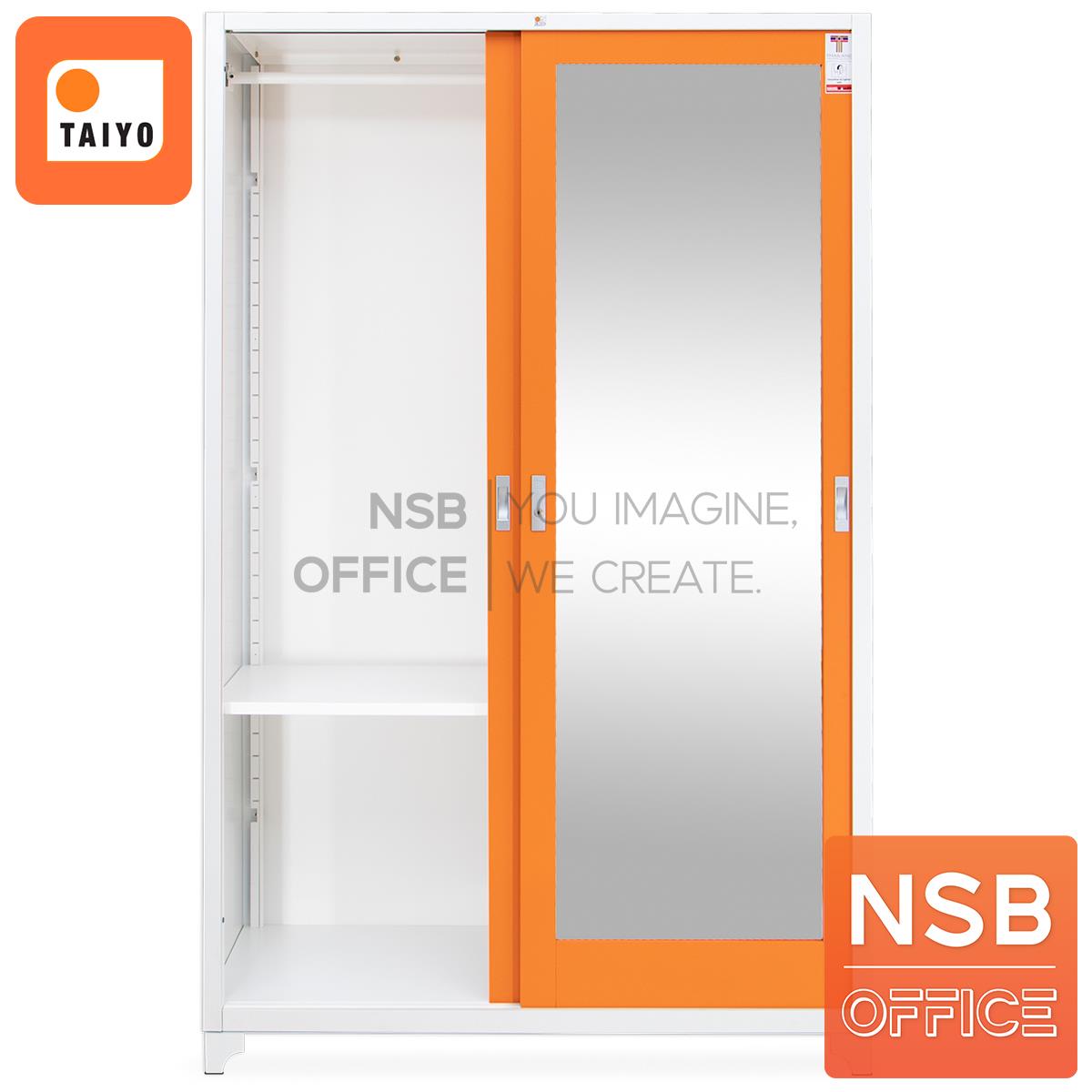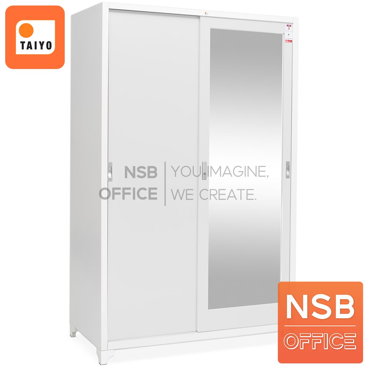 : ตู้เสื้อผ้าเหล็ก 1 บานเลื่อนทึบ 1 บานเลื่อนกระจก (มีราวแขวนด้านใน) รุ่น WDSD-04-00 มีฐานรองตู้