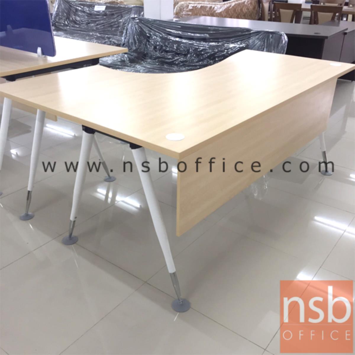 : โต๊ะทำงานตัวแอลหน้าโค้งเว้า รุ่น AS-RL1618 ขนาด 180W1*120W2 cm. ขาเหล็กปลายเรียว