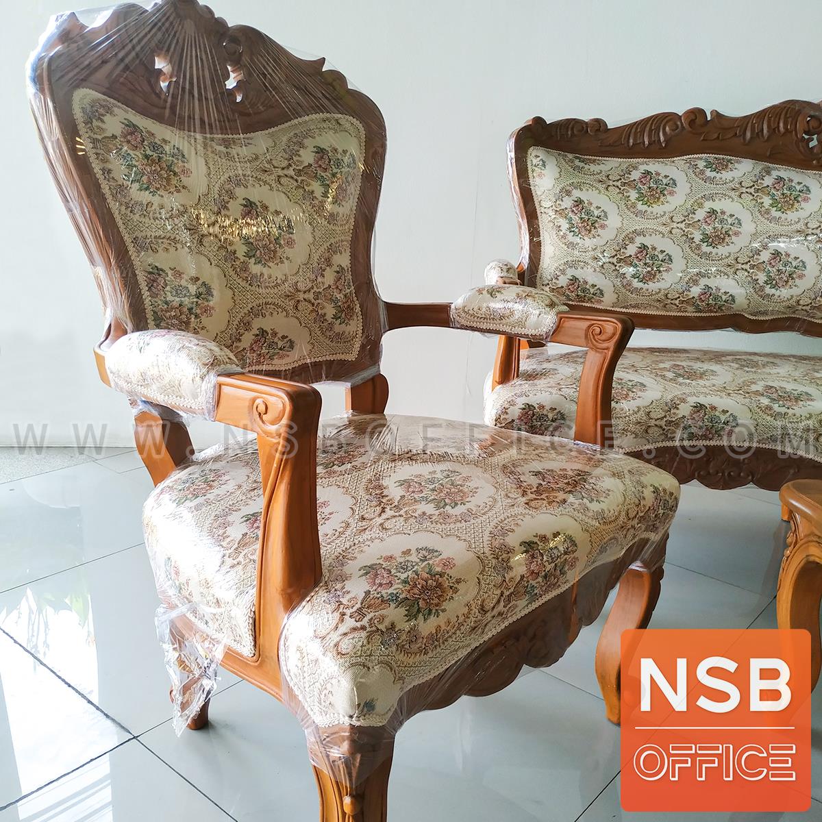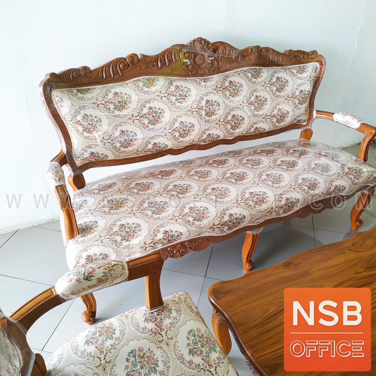 : ชุดโซฟาหลุยส์ลายกุหลาบ 1 ตัวยาว 2 ตัวสั้น พร้อมโต๊ะกลาง โครงไม้สักแท้