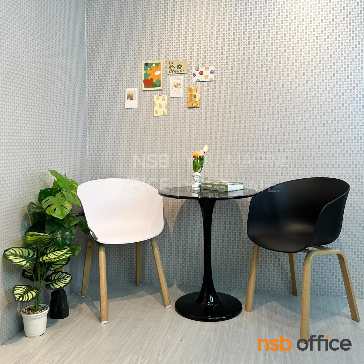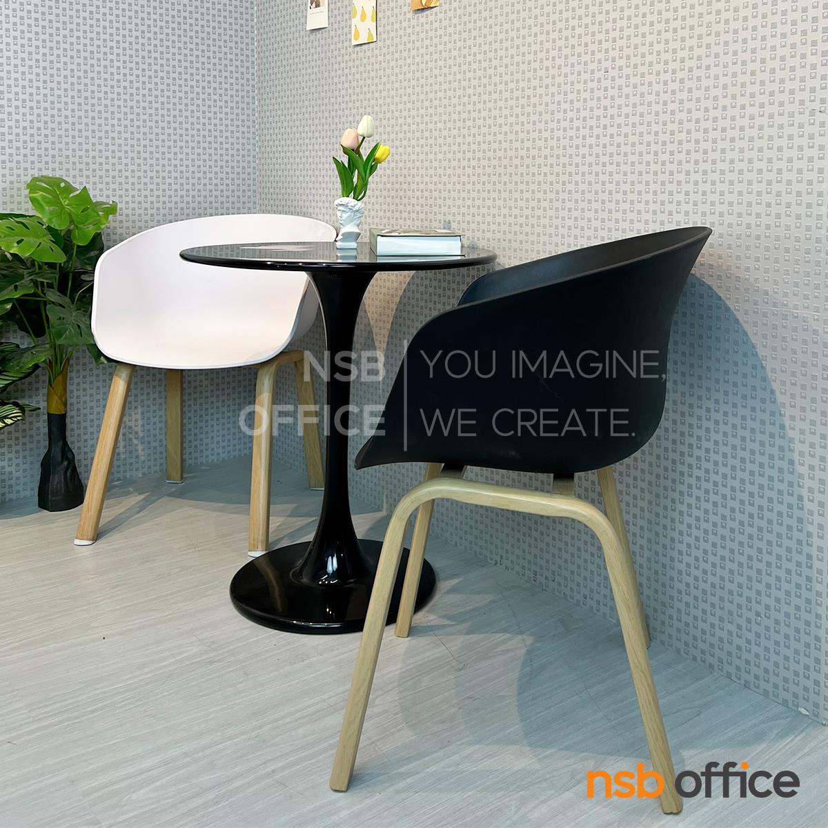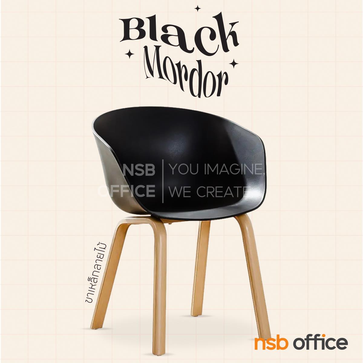 : เก้าอี้โมเดิร์นพลาสติก รุ่น Mordor (มอร์ดอร์) สีดำ ขาเหล็กหุ้มลายไม้