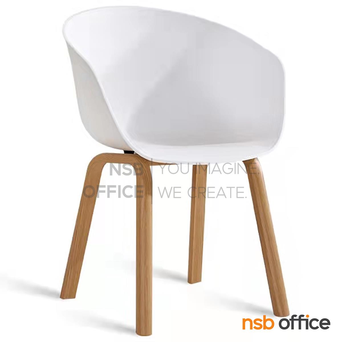 : เก้าอี้โมเดิร์นพลาสติก รุ่น Mordor (มอร์ดอร์) สีขาว ขาเหล็กหุ้มลายไม้